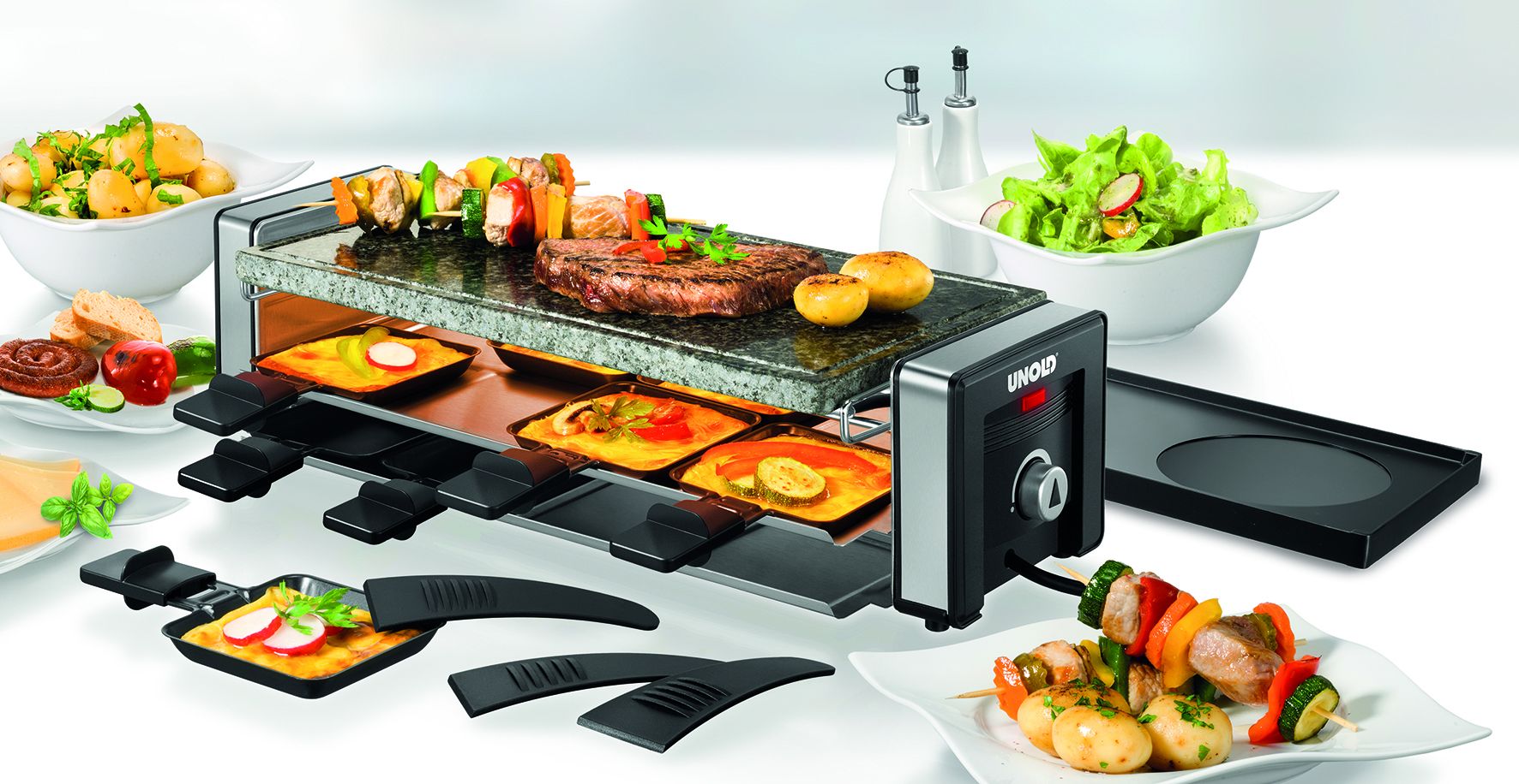 Zwölf Monate stehen sie im Küchenschrank, am letzten Tag des Jahres hat das Duo seinen großen Auftritt: Fondue und Raclette. Silvester führt da einfach kein Weg vorbei. Dass die Raclette- und Fondue-Geräte von Unold beste Wahl sind, steht jetzt schwarz auf weiß im ETM Testmagazin für Haus und Garten. Je einmal “Gut” gab’s für das „Raclette délice“ und für das Fondue „élégance“.