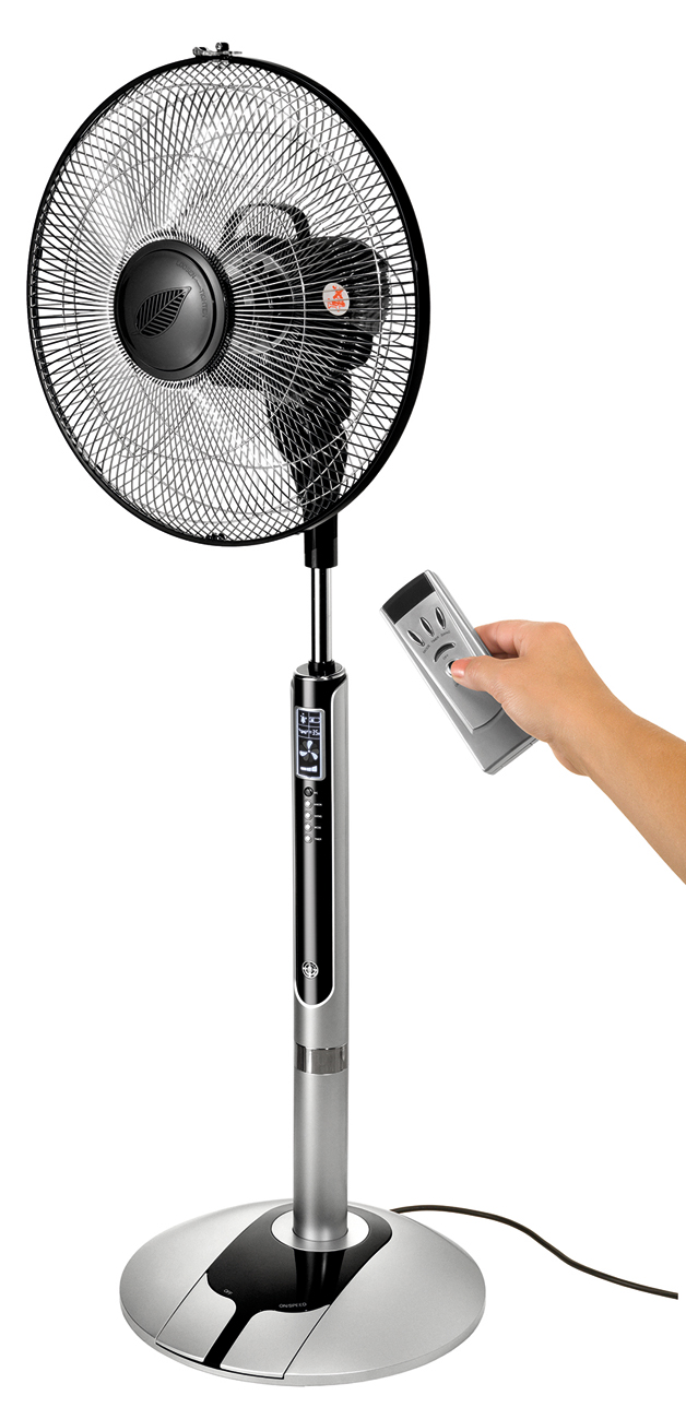 Der Unold Standventilator Turbo zirkuliert die Luft mit der 3D Oszillation. Zusätzlich sorgen eine im Gerät installierte Aroma-Box und ein Ionisator für Frische. Per Fußschalter oder Fernbedienung kann der leise Ventilator bedient werden. Mit eingebauter Zeitschaltuhr kann das Gerät über einen Zeitraum von 30 Minuten bis zu 7,5 Stunden eingestellt werden. Auf dem LCD-Display lassen sich alle Einstellungen ablesen. Drei Windstärken stehen zur Auswahl: Schlaf, normal, natürlich. So entsteht ein angenehmes Wohlfühlklima ohne Zuggefahr. Der mit einem Touch-Stop-Sensor ausgerüstete Ventilator schaltet das Gerät nach Berührung des Drahtgestells automatisch ab.