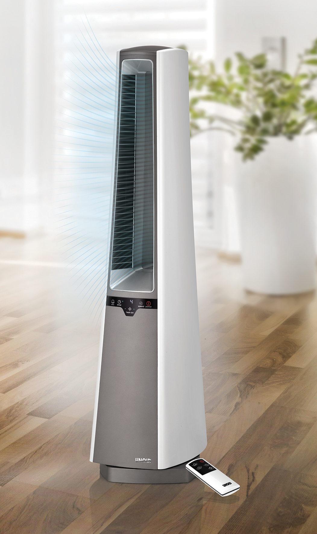 Der Unold Ventilator Senza verfügt über nicht sichtbare Rotorflügel. Ausgestattet ist das Gerät mit einer 4-stufigen Geschwindigkeitsregelung.
