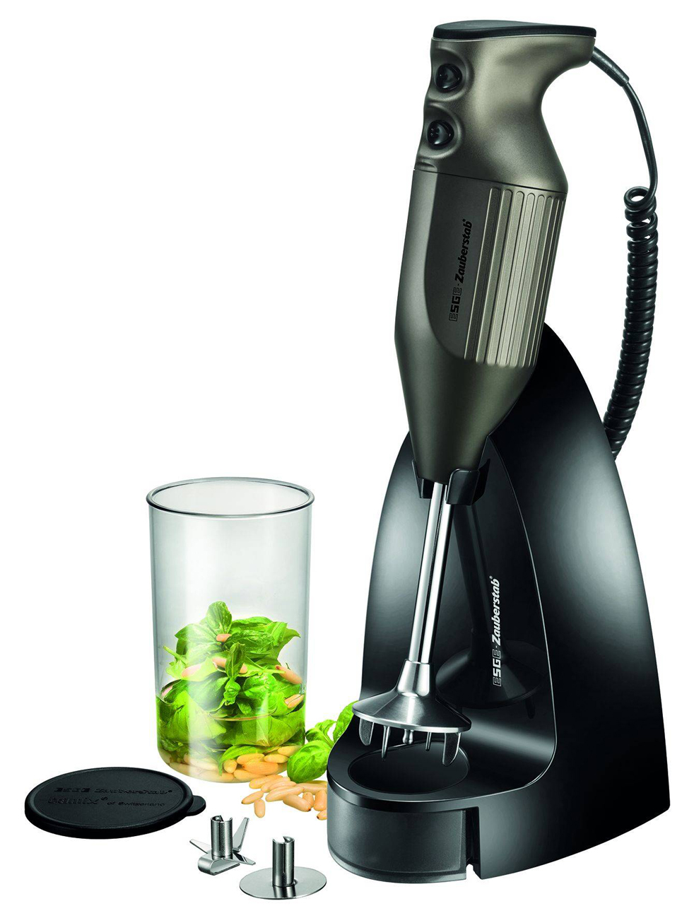 - Zubehör: ESGE-Multifunktionsmesser, ESGE-Schlagscheibe, 0,4 Liter fassender Mixbecher, Zauberbasis Black