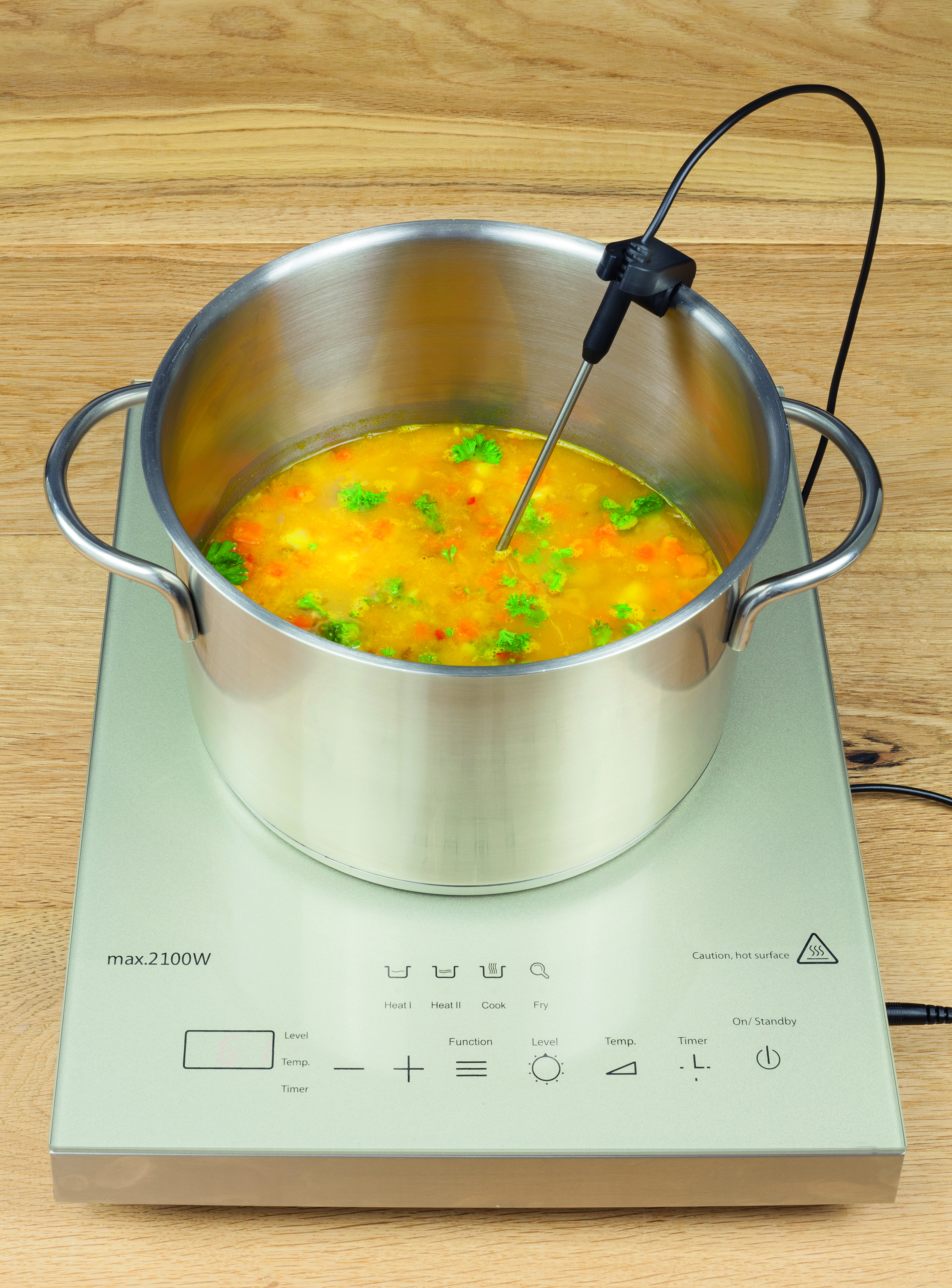 Ein revolutionärer Backofen, der Fleisch, Fisch und Gemüse durch elektromagnetische Wellen bis zum jeweils perfekten Garpunkt erwärmt. Der Fisch gart im Eis, ohne das dieses schmilzt. Das lässt jede Mikrowelle alt aussehen. - Caso Induktionskochfeld TC 2100 Thermo Control: