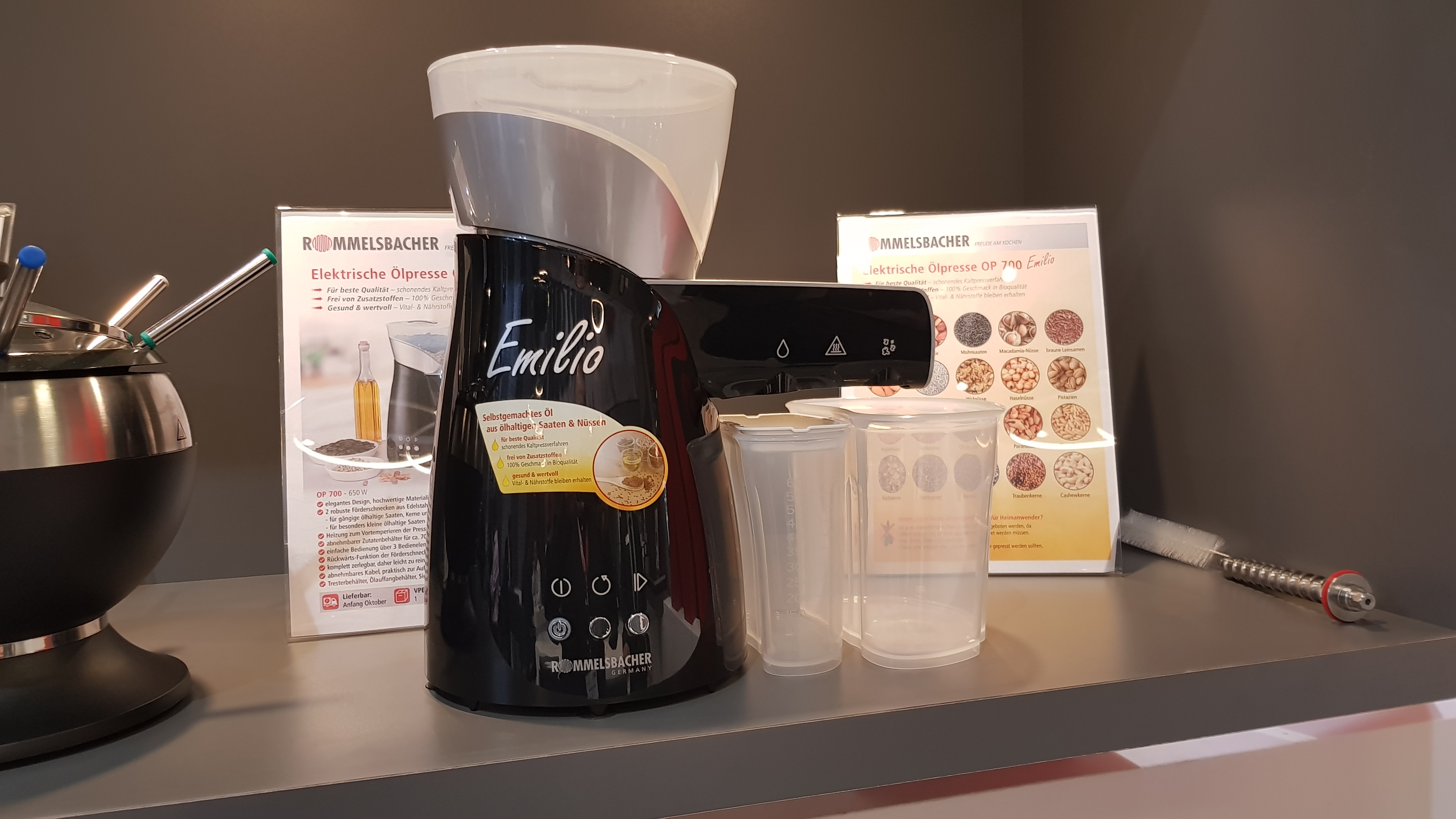 Das ist die erste Ölmühle, die ich auf der IFA gesehen habe. Endlich kann man seine Öle selber machen, da panscht keiner mehr dazwischen: Wie wäre es mal mit einem Chia-Samen Öl oder Öl aus Macadamia-Nüssen? - Steba Waffeleisen