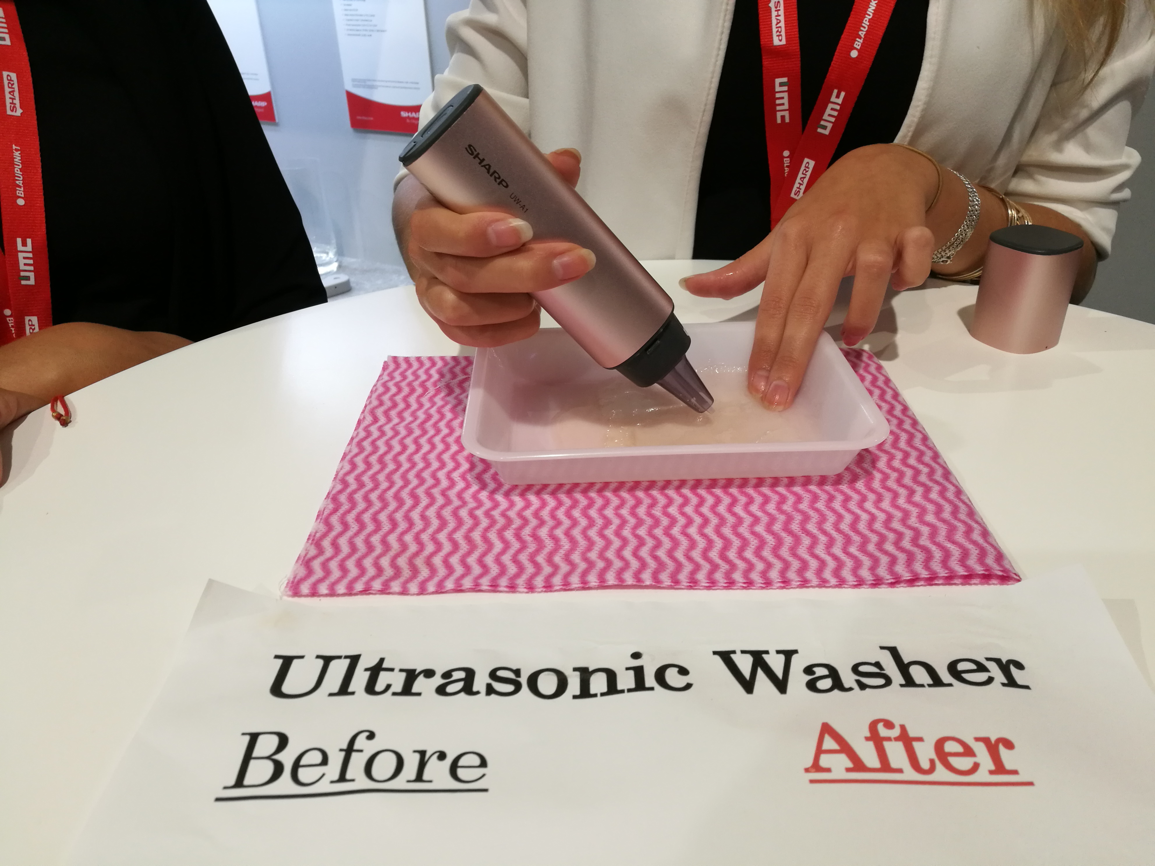 IFA Highlight: Weg mit dem Fleck. Der Ultrasonic Washer von Sharp beseitigt in Sekundenschnelle kleine Flecken.