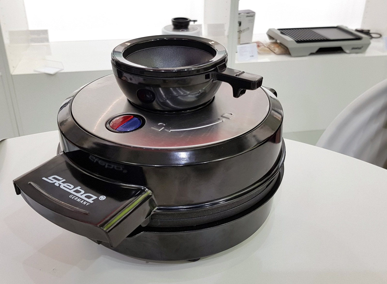 IFA Highlight: Nichts schwappt mehr über! Das neue Waffeleisen von Steba wird über einen Trichter befüllt, der nach Gebrauch im Boden des Gerätes verstaut wird.