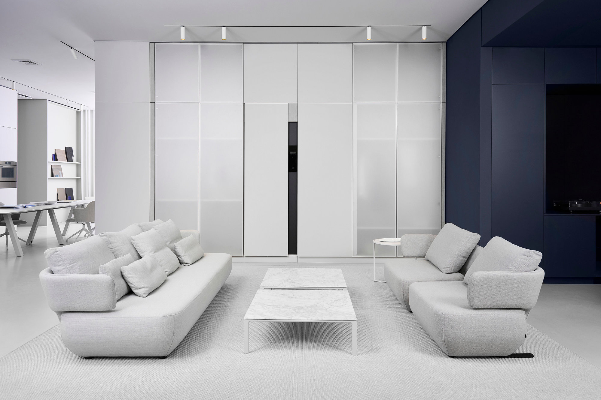 Das repräsentativ am Großen Burstah 1 gelegene Küchenstudio fügt sich dezent in den Kontext der Stadt ein. Das hellgrau-dunkelblaue Farbschema der Innenarchitektur erschafft eine inspirierende Atmosphäre, die zum Entdecken der Produkte einlädt. Hier trifft hanseatisches Understatement auf Schweizer Eleganz.