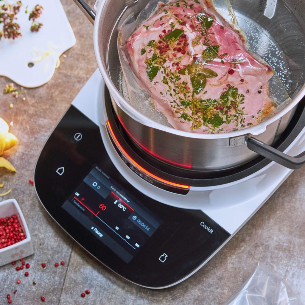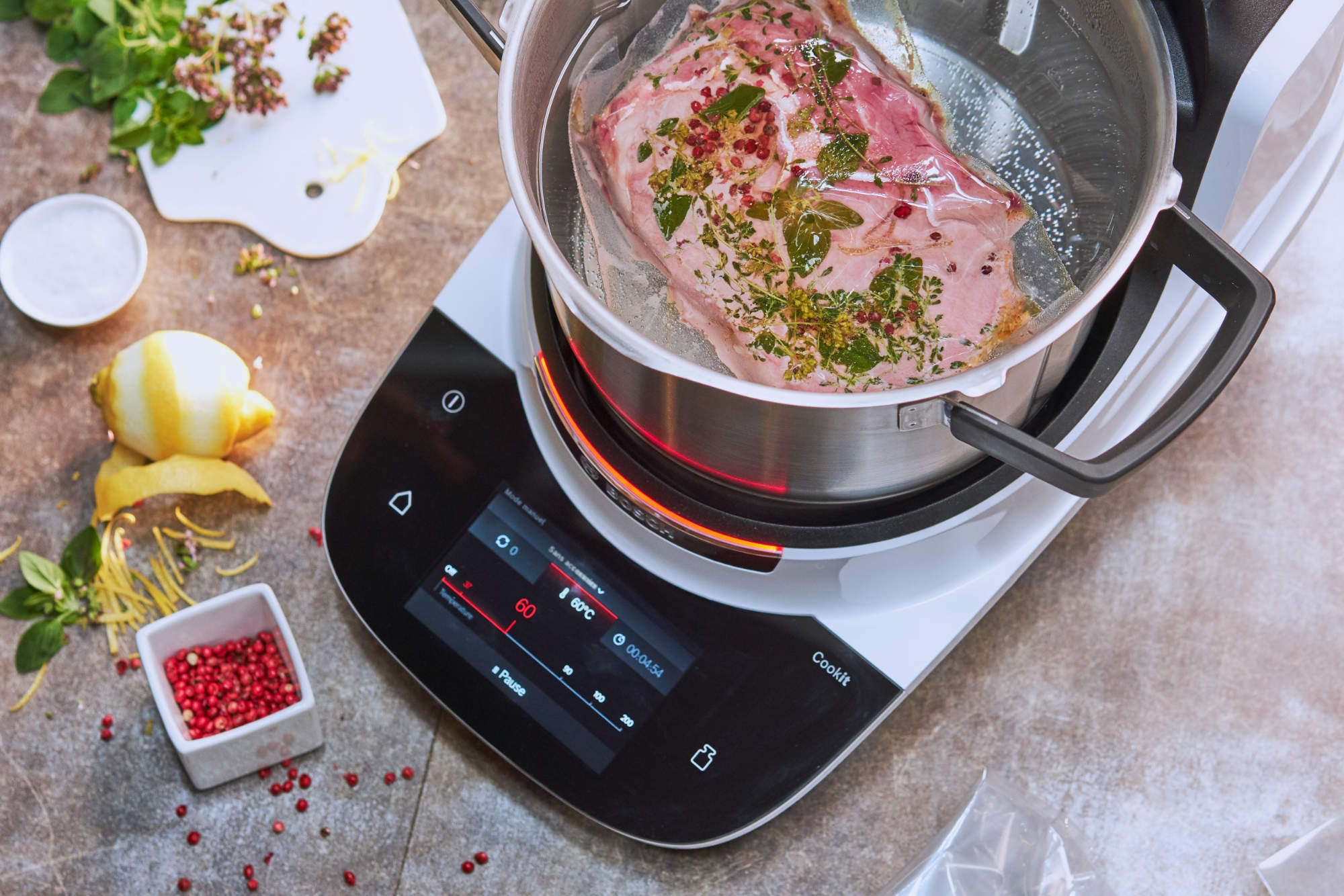 Die Sous-Vide Garmethode unter Vakuum liefert punktgenaue Ergebnisse für Fleisch, Fisch, Gemüse oder Obst. Der Cookit von Bosch übernimmt dabei Temperaturführung und Garzeit. Voreingestellte Programme oder manuelle Einstellungen ermöglichen präzise Ergebnisse. Nach dem Garen kann direkt im Gerät bei bis zu 200 °C für Röstaromen gesorgt werden. Besonders geeignet ist das Verfahren auch zur Grillvorbereitung von Lebensmitteln wie Lachs, Hähnchenbrust oder Fenchel.