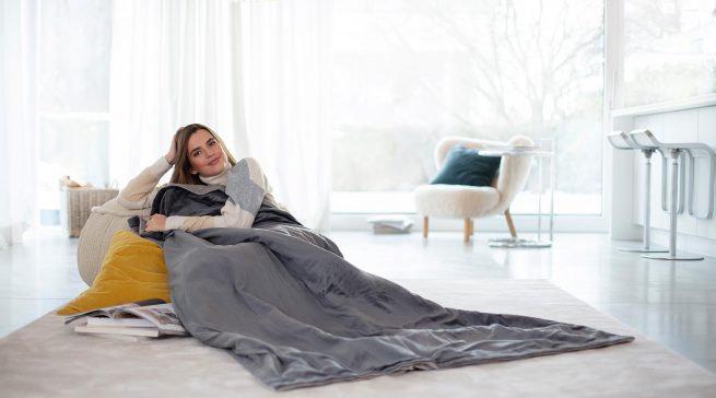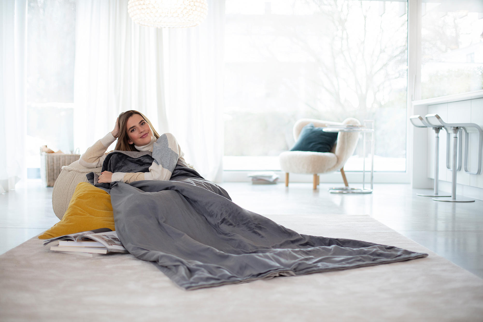 Für Kuschelmomente sorgt die Wärmezudecke HD 75 Cosy Dark Grey mit anschmiegsamer Flauschfaser. Sechs Temperaturstufen und die Abschaltautomatik nach drei Stunden bieten Komfort und angenehme Wärme.