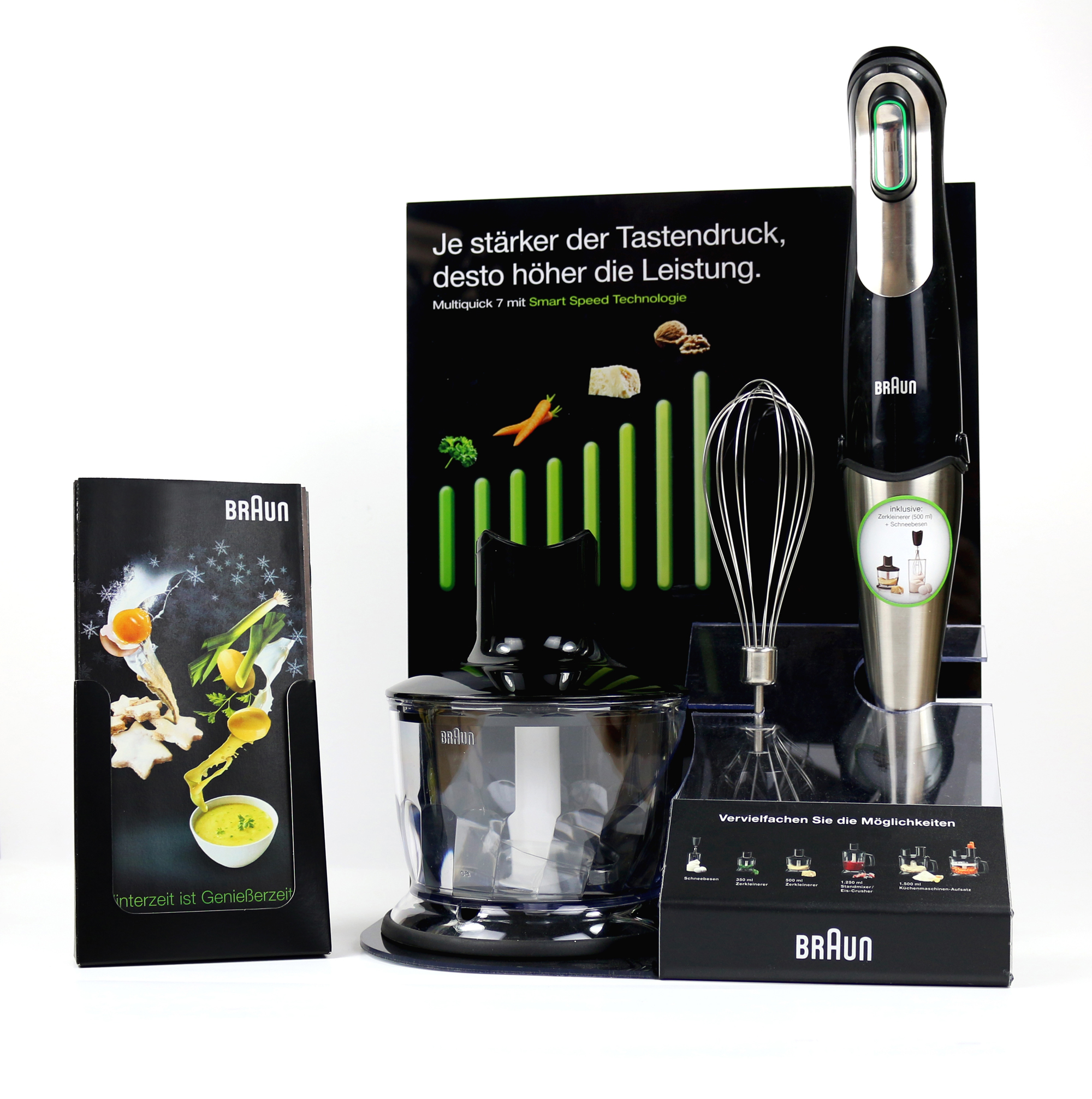 Mit aufmerksamkeitsstarken Online- und PoS-Kampagnen zur Stabmixer-Serie Multiquick 7 und zu den Dampfbügelstationen der Serie CareStyle 5 unterstützt Braun seine Handelspartner im Weihnachtsgeschäft. Wärmende Suppen gehen mit dem MQ 7 Stabmixer schnell von der Hand. Doch auch süße Plätzchen sind mit dem vielseitigen Zubehör der MQ 7-Sets leicht zubereitet und kommen im Winter besonders gut an: die Online-Maßnahmen zum Multiquick 7 konzentrieren sich daher auf kreative Rezeptideen mit dem Stabmixer. Auf ausgesuchten Food-Plattformen wie zum Beispiel Lecker.de, Chefkoch.de, essen-und-trinken.de, fit-for-fun.de oder erdbeerlounge.de bewirbt Braun seinen MQ 7 bis Ende dieses Jahres mit der Banner-Kampagne „Das beste Rezept“.