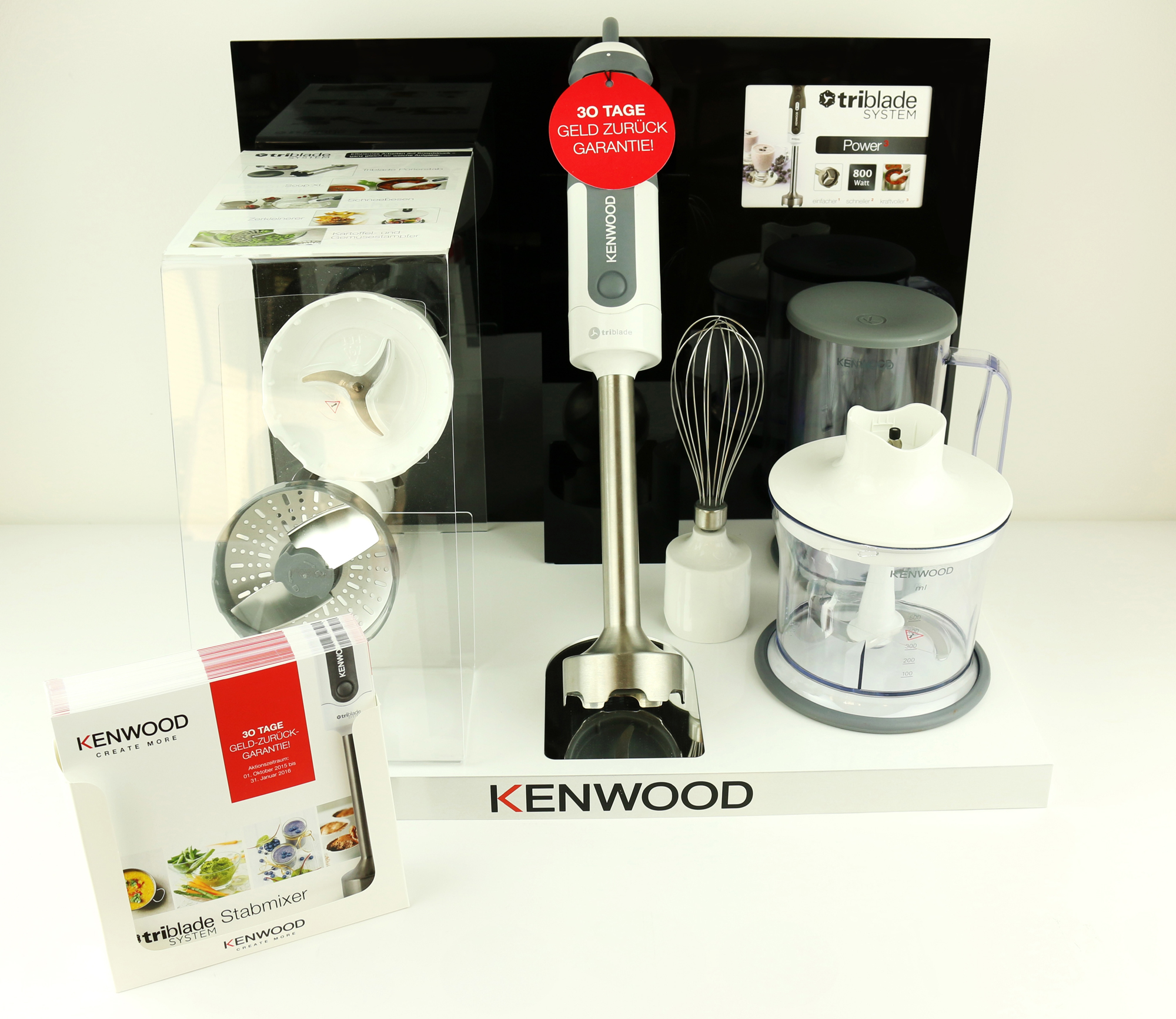 Noch bis 31. Januar 2016 können interessierte Kunden die Triblade-Stabmixer von Kenwood kaufen und in Ruhe zu Hause testen – bei Unzufriedenheit gibt es das Geld zurück. Um die Aktion im Weihnachtsgeschäft zu unterstützen, bietet Kenwood aufmerksamkeitsstarkes PoS-Material für seine Handelspartner an.