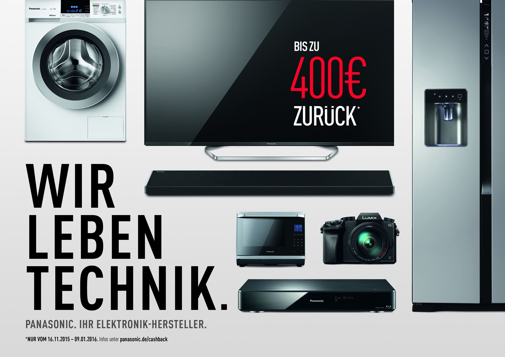 Mit einer breit angelegten Cashback-Aktion für 4K VIERA TVs, Heimkino-Produkte, LUMIX G Systemkameras und Haushaltsgeräte schafft Panasonic jetzt zusätzliche Kaufanreize und unterstützt den Fachhandel im Weihnachtsgeschäft. Bis zu 400 Euro erhält der Endkunde beim Kauf ausgewählter Produkte in Deutschland oder Österreich zurück. Während des gesamten Aktionszeitraums unterstützt Panasonic den Handel mit einer reichweitenstarken Werbekampagne. Durch gezielte Marketingmaßnahmen sollen bis zu 600 Millionen Kontakte erreicht werden.