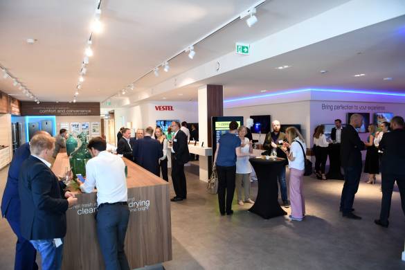 Ende Juli eröffnete Vestel einen neuen, internationalen Showroom in Hallbergmoos, der durch die direkte Nähe zum Münchner Flughafen und zur Unternehmenszentrale in Garching optimal angebunden ist. Zum „Open House“ eingeladen waren Kunden, Mitarbeiter und Pressevertreter, die sich auf 900 Quadratmetern Fläche von den Räumlichkeiten und den Produkten des türkischen Herstellers überzeugen konnten.