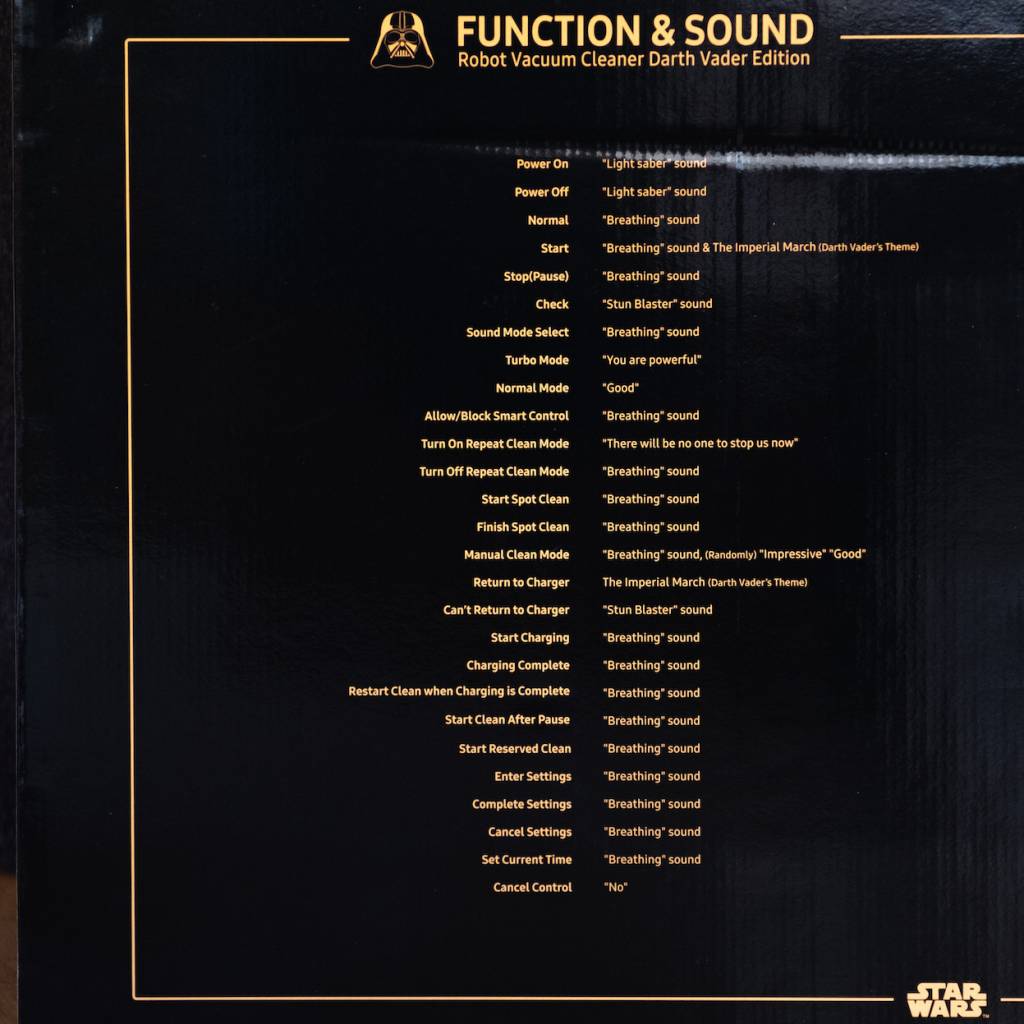 Im Prinzip unterscheidet sich die Limited Edition nur in zwei Punkten vom “normalen” VR7000: Zum einen in der Optik, die bei dem von uns getesteten Modell an Darth Vader angelehnt ist. Zum anderen hat Samsung der Star Wars-Edition spezielle Sounds spendiert. Wenn der VR7000 seinen Dienst antritt, spielt der Saugroboter den imperialen Marsch. In anderen Szenarien erklingen Lichtschwerter oder das Darth Vater-typische Atemgeräusch.