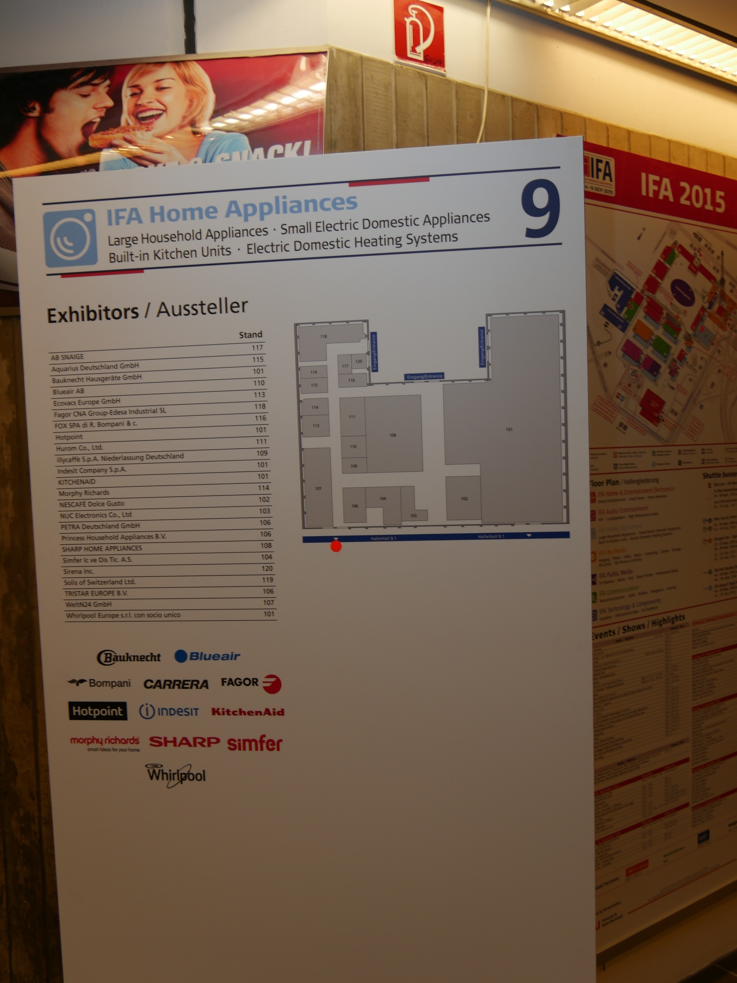 Großes Stühle rücken schließlich in Halle 9, in der sich jetzt – aus Halle 7 kommend – Bauknecht inklusive Indesit bzw. Whirlpool als Ankermieter niedergelassen hat. Überhaupt verdient die Halle 9 Aufmerksamkeit: Solis kommt aus der Halle 8.1 und freut sich hier über eine größere Standfläche (Stand 119) und mehr Aufmerksamkeit, Petra Electric, früher in der Halle 4, wird mit dem Induktions-Wasserkocher die Besucher am Stand 106 neugierig machen. Weitere Aussteller in der Halle 9 sind u.a. Ecovacs (Stand 113), Fagor (Stand 118) , Morphy Richards (Stand 114), Nescafe Dolce Gusto (Stand 102) und Sharp (Stand 108).