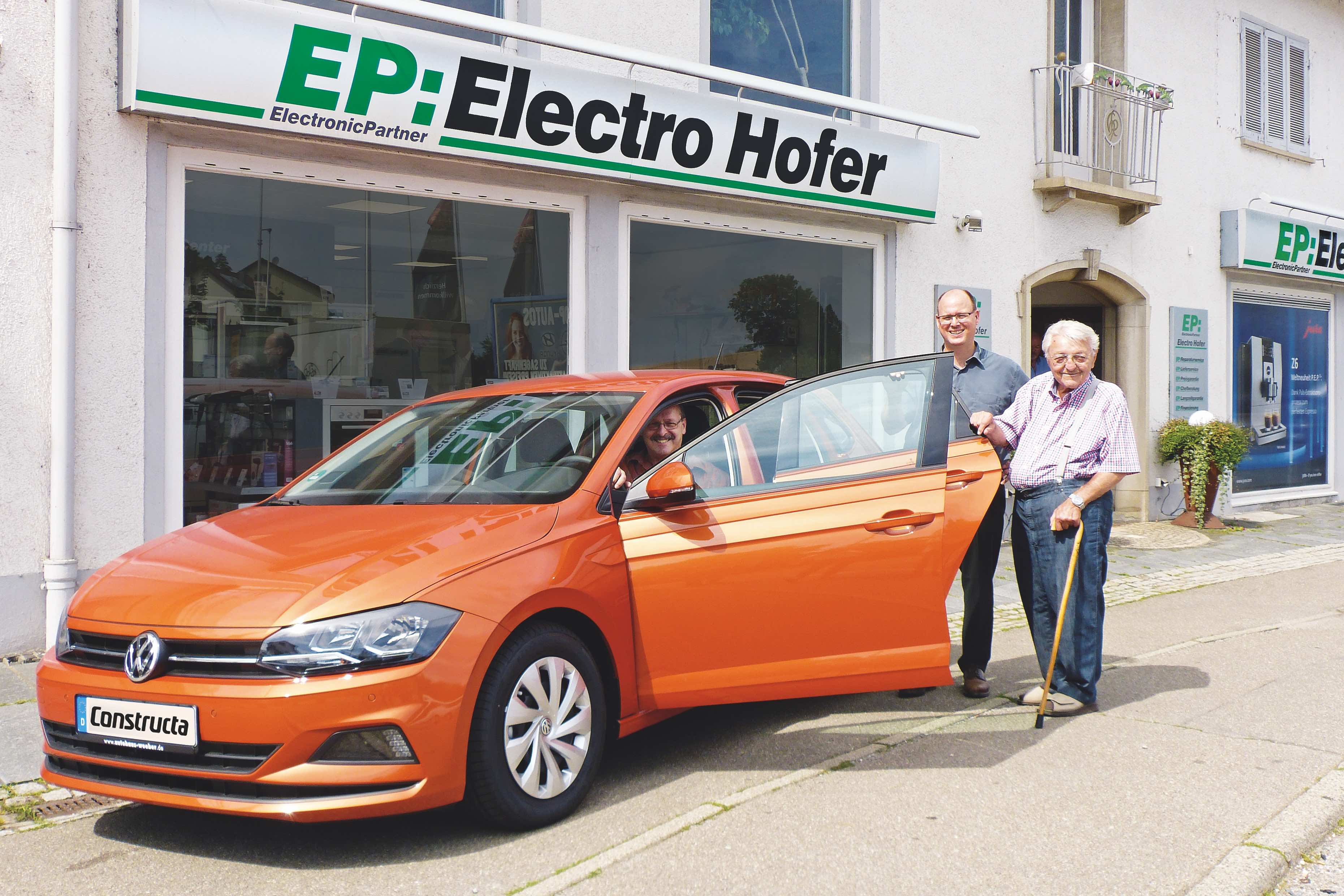 Manfred Sobotta, der Gewinner aus Ammerbuch, nahm den Neuwagen jetzt bei seinem Elektrofachhändler EP: Electro Hofer gemeinsam mit seinem Sohn entgegen. Dort kaufte er Anfang des Jahres die Constructa energy Waschmaschine CWF14N00 und nahm am Gewinnspiel teil.