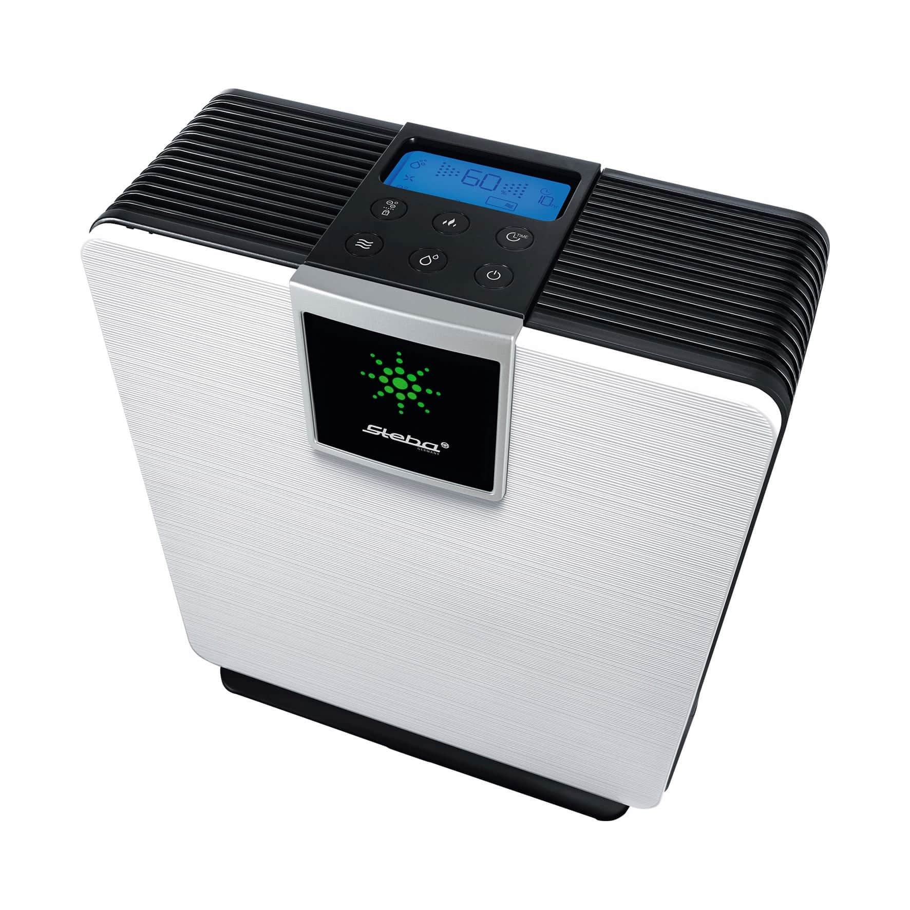 Der Vorteil: Diese Art der Luftreinigung benötigt keine Filter, die immer wieder ausgetauscht werden müssen. Lediglich ein drei Liter großer Wassertank muss immer wieder mal neu befüllt bzw. mit sauberem Wasser versehen werden. Der Steba AW 210 PURE eignet sich so für Räume mit bis zu 20 qm Grundfläche und arbeitet, bei Bedarf per Timer gesteuert, in fünf Programmen angenehm leise.