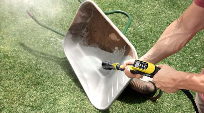 Mühelos und schnell geht das Saubermachen mit einem Hochdruckreiniger von der Hand. Er ersetzt Schrubber, Handbürste und Wassereimer. Der kräftige Wasserstrahl löst den Schmutz ab und spült ihn anschließend weg. Auf gleiche Weise können auch Blumenkübel und Pflanzkästen sowie die Gartenmöbel sauber gemacht werden.