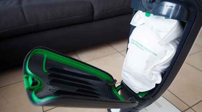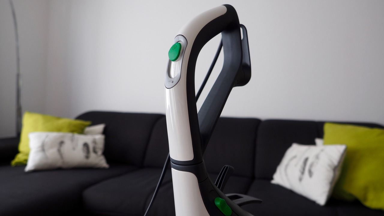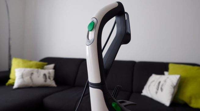 Wie bereits angesprochen, hat Vorwerk bei dem neuen Kobold-Modell großen Wert auf die Funktionalität gelegt: Der Teleskopstiel lässt sich durch eine dezente Taste auf der Rückseite schnell und einfach verstellen, was vor allem der Ergonomie zugutekommt. Auf der Vorderseite fügt sich ein Tragegriff nahtlos in den VK200 ein. Bei Bedarf kann dieser ausgeklappt werden, um den Handstaubsauger die Treppe hochzutragen oder andere Hindernisse zu überwinden.