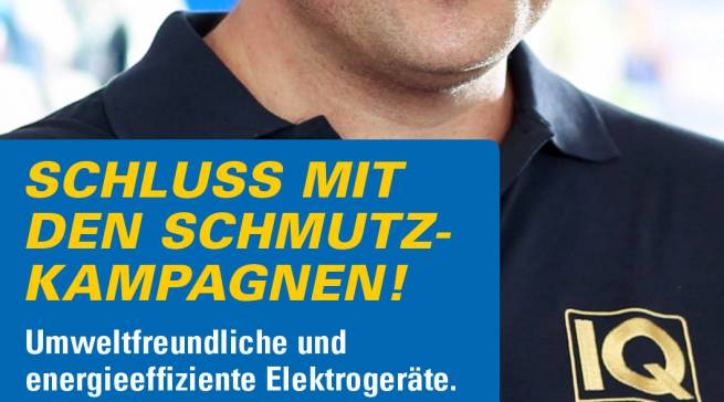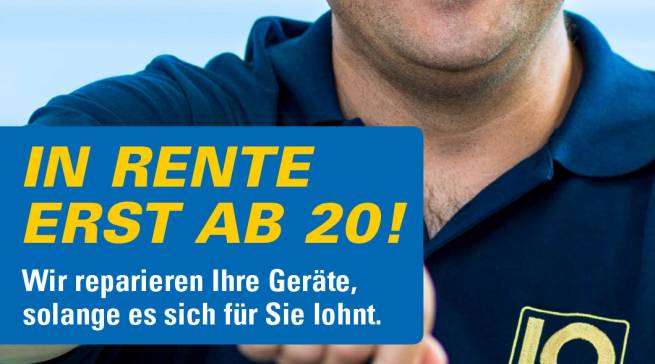 Dabei stützen sie diese Aussage mit humorvollen Persiflagen auf das Standardvokabular von Politikern. Da wirbt beispielsweise der sympathische IQ-Fachhändler „Für Arbeitsplätze am Ort“ und verweist auf den örtlichen Fachhandel. Oder er plädiert dafür, die Rente erst ab 20 einzuführen – für Elektrogeräte wohlgemerkt, denn was jünger ist, wird selbstverständlich von ihm repariert.