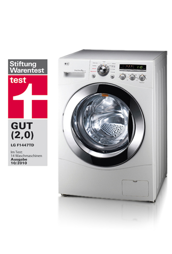 Willich, 8. Oktober 2010 – Qualität die überzeugt: Das Modell LG F1447TD erhält im aktuellen Waschmaschinentest der Stiftung Warentest die Gesamtbewertung „GUT" (Note 2,0) (Stiftung Warentest Ausgabe 10/2010). In den Bereichen „Dauerprüfung" und „Schutz vor Wasserschäden" ist die Waschmaschine mit der Note „sehr gut" gleichauf mit den beiden Testsiegern. Mit der Bestnote zeichnet Stiftung Warentest ebenfalls den geringen Wasserverbrauch bei voller Beladung und 40 Grad Waschtemperatur aus. In der Gesamtwertung teilt sich das Gerät von LG damit den dritten Platz mit der AEG Elektrolux L74650H und dem Modell WAE28143 von Bosch. Getestet wurden insgesamt 14 Waschmaschinen.