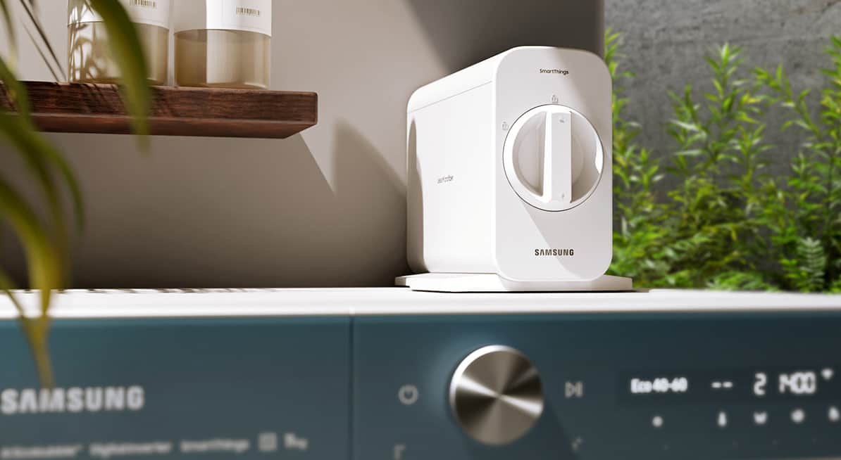 Samsung bringt einen externen Filter auf den Markt, der die Abgabe von Mikrofaser-Emissionen, die während des Waschvorgangs entstehen, in das Abwasser verringert.