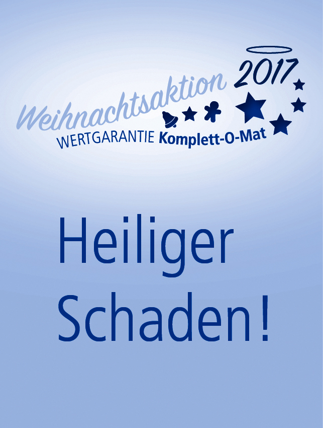 Heiliger Schaden: Mit dem „Komplett-O-Mat“, dem virtuellen Glücksspielautomaten von Wertgarantie, können sich die Partner des Spezialversicherers ab sofort Gewinne im Gesamtwert von 100.000 Euro erspielen. Nach Art eines einarmigen Banditen entscheidet das Glück über Gewinn oder Niete – jeder aktionsberechtigte Vertrag ermöglicht eine Spielrunde. Je mehr Geräte mit „Heiligenschein“ beim Stopp der Walzen zu sehen sind, desto höher fällt der Wert des Gewinngutscheins aus.