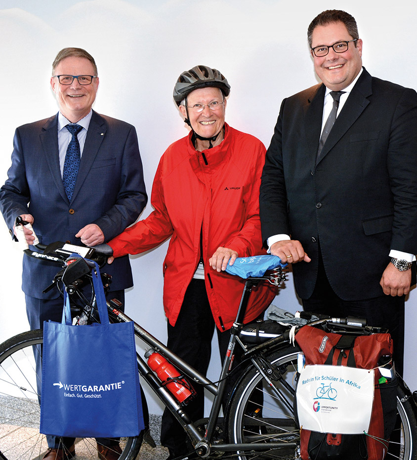 Die diesjährige Nord-Tour betrug 2.700 Kilometer. Auch in diesem Jahr führte die Route der pensionierten Kinderärztin über Hannover, wo sie wieder einen Zwischenstopp bei Wertgarantie einlegte. Das Unternehmen unterstützt das Projekt erneut mit einem Euro pro gefahrenen Kilometer. Durch diese und weitere Spenden ist ein aktueller Betrag von rund 16.000 Euro zusammengekommen, der für Microschools in Ghana eingesetzt werden soll. „Liebend gerne unterstützt Wertgarantie wieder das Projekt „Radeln für Schüler in Afrika“, denn wenn wir Kindern den Zugang zu Bildung ermöglichen können, dann machen wir das auch“, betont Patrick Döring, Vertriebsvorstand von Wertgarantie.