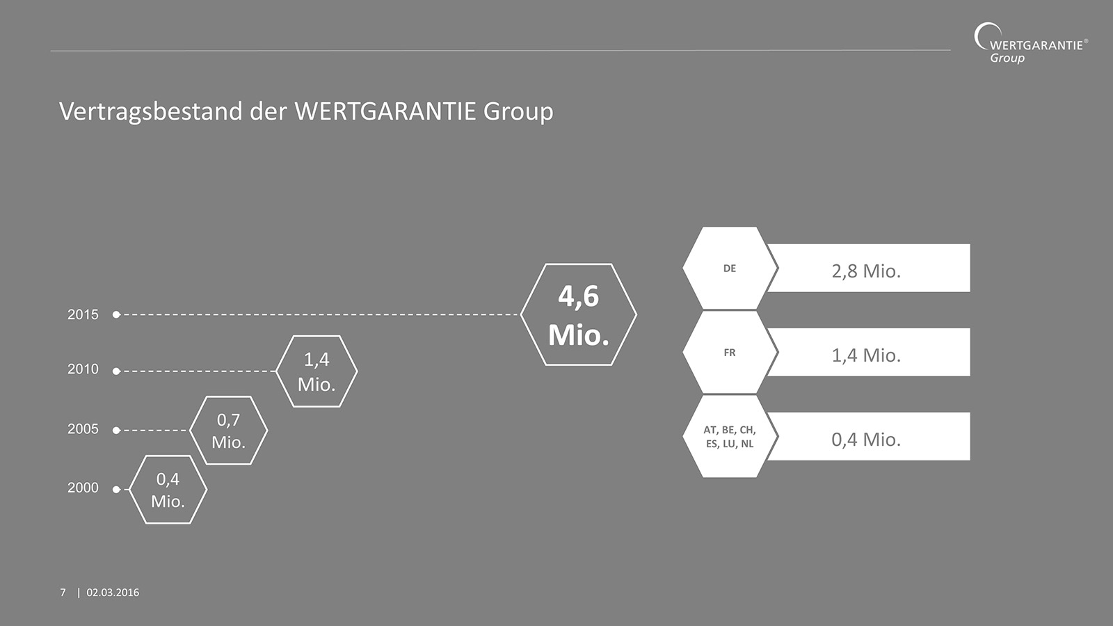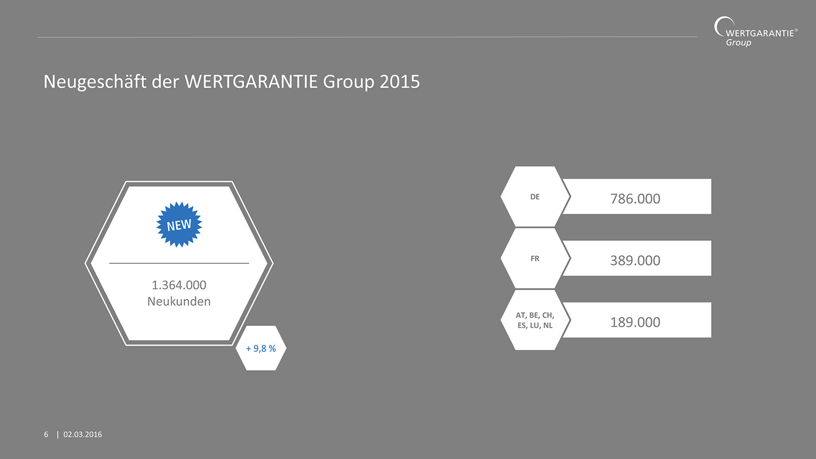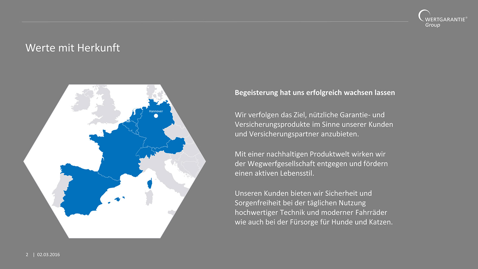 Die neue Geschäftsaufteilung dokumentiert ferner eine stärkere Hinwendung der Wertgarantie auf weitere europäische Märkte. Bis auf Frankreich wird man den europäischen Auftritt konsequent unter der Dachmarke Wertgarantie abwickeln. „Der deutsche Name“, so Schröder, „habe einen sehr guten Klang und verkörpere die deutschen Werte wie Vertrauen und Zuverlässigkeit.“