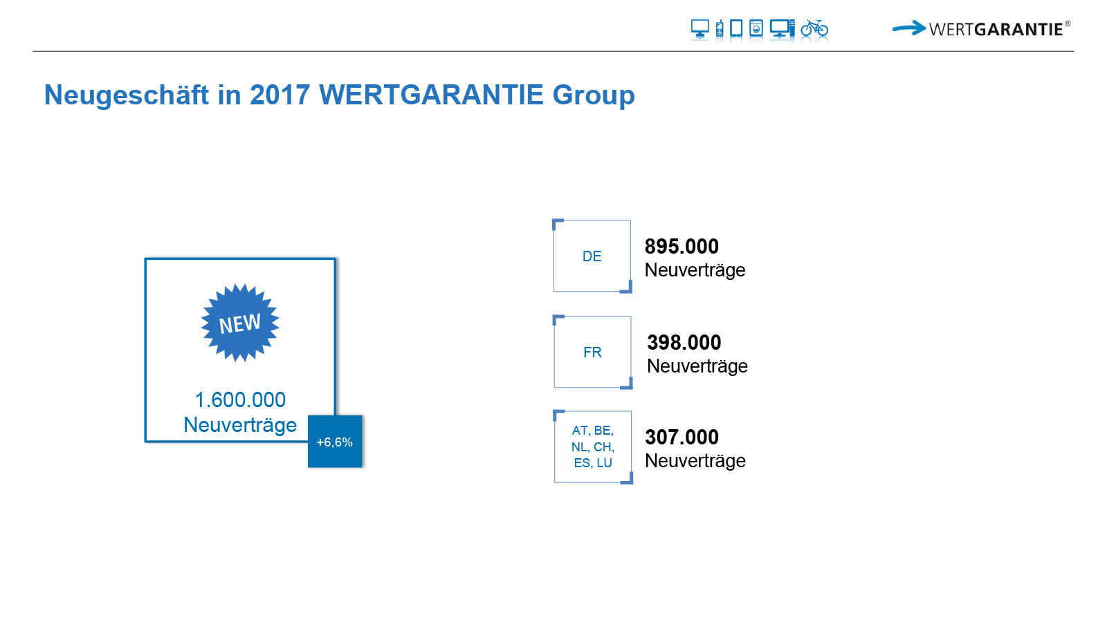 Der Erfolg der Wertgarantie im vergangenen Jahr 2017 lässt sich eindrucksvoll mit zwei Zahlen verdeutlichen: Die Wertgarantie Group hat mit 1,6 Millionen Verträgen das höchste Neugeschäft in der Unternehmensgeschichte erreicht. Und: Für die Kunden des Spezialversicherers wurden mehr als 850.000 Versicherungsfälle „unkompliziert reguliert“.