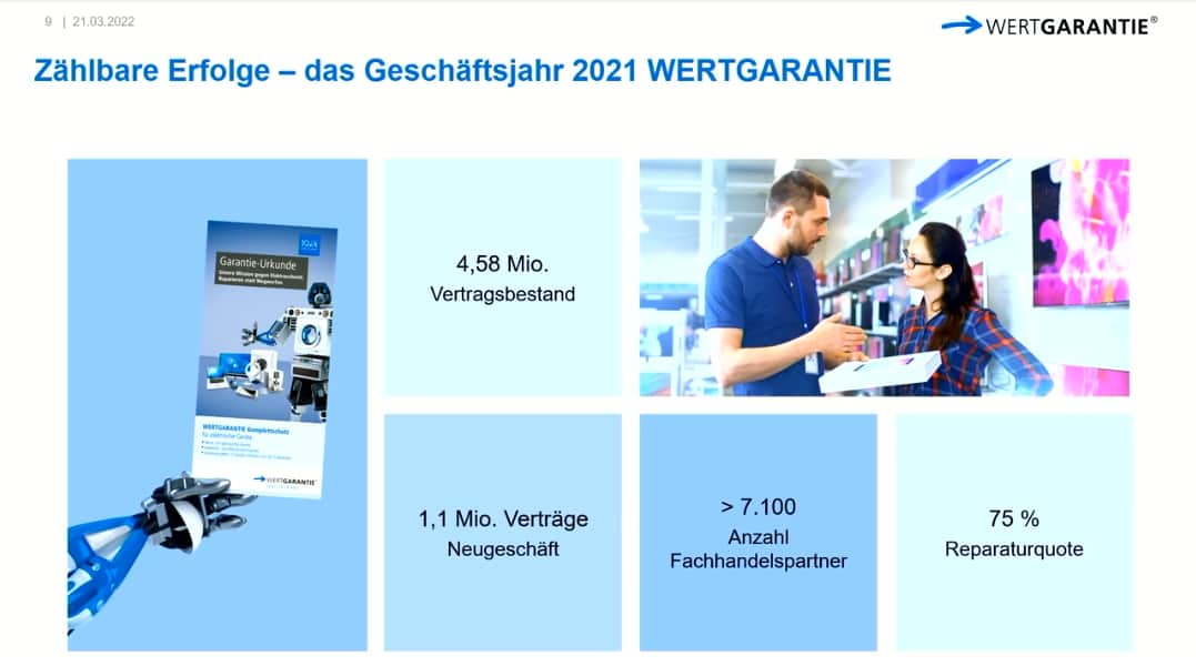 Der Ausblick auf das Jahr 2022 ist positiv: In den ersten Monaten liegt Wertgarantie bereits über Plan. Mit der Konzentration auf die Stärken des Geschäftsmodells und der gewachsenen Partnerstruktur gehen Wertgarantie und ihre Partner gut aufgestellt in die Zukunft. Fachhändler, die sich service- und dienstleistungsorientiert aufgestellt haben, stehen heute gut da und werden auch morgen krisenfest sein – so die feste Überzeugung des Spezialversicherers.