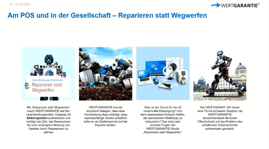 Eine Argumentationshilfe für den POS hat Wertgarantie mit dem Engagement für „Reparieren statt Wegwerfen“ gegeben. Nachhaltigkeit hat sich als wichtiges Verkaufsargument etabliert, das Thema Elektroschrott setzt hier an und bietet mehr Gesprächsanlässe mit den Kunden.