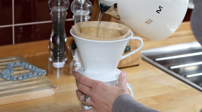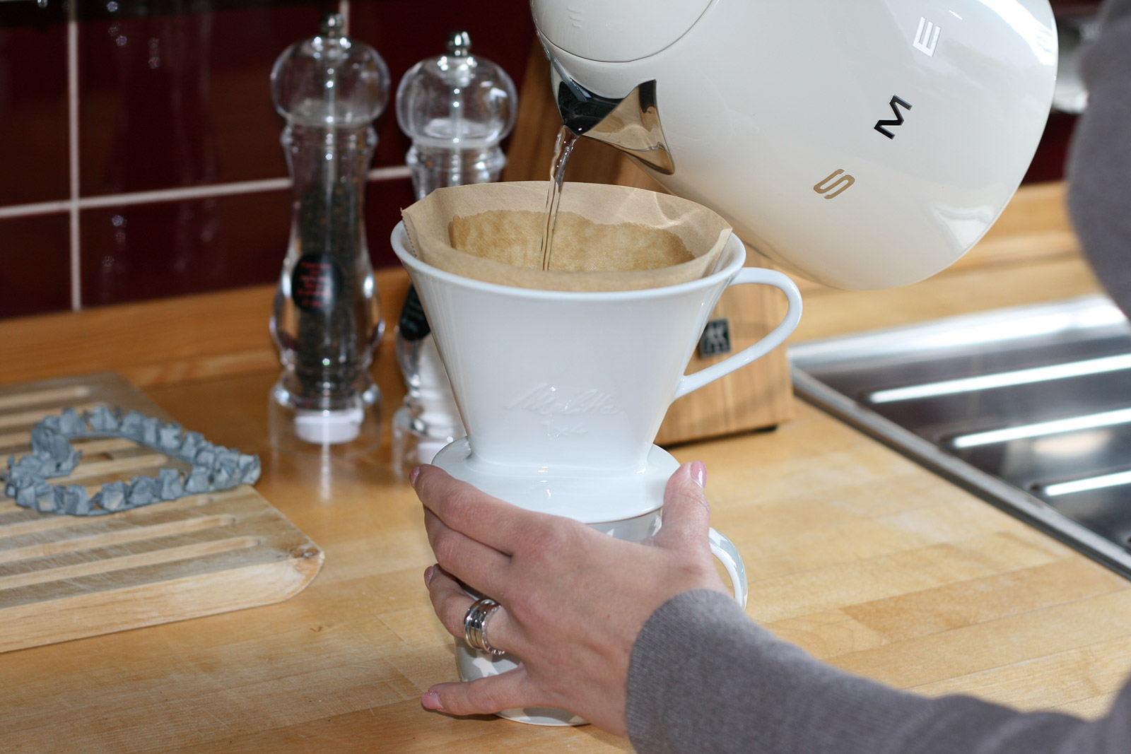 Noch vor der Dusche führt mich der erste Gang in die Küche. Kaffeetasse bereitstellen, Handfilter drauf, Wasserkocher starten, dann 7,5 Gramm frisch gemahlenen Kaffee in den Filter. Da beginnt jeder Tag genau gleich.