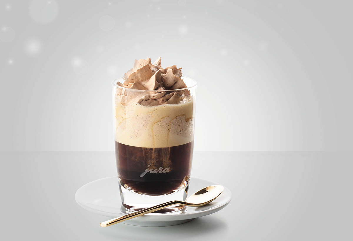 - Bereiten Sie einen Kaffee direkt in ein kleines Latte-macchiato-Glas zu.