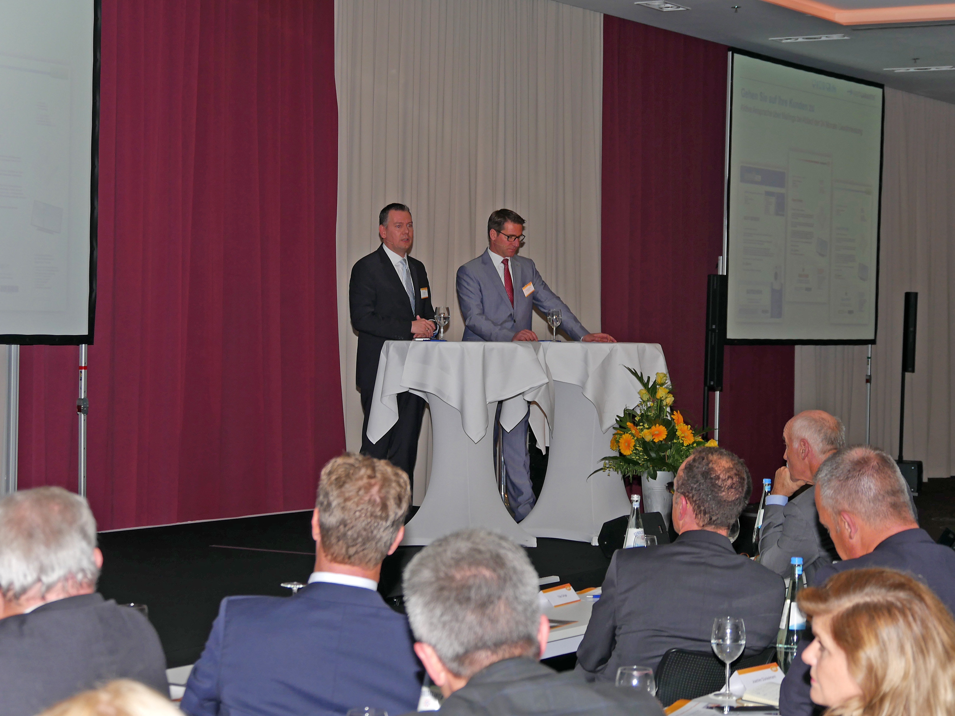 Zielte Rempes Vortrag auf die persönliche Veränderung und auf das Aufbrechen der Komfortzonen des einzelnen Individuums ab, so gingen Vorstand Johannes Schulze und Geschäftsführer Thilo Dröge vom WIR-Förderer Wertgarantie auf die massiven Strukturveränderungen im Markt ein. So wird Crosschanneling immer wichtiger. Nach Erkenntnissen der Wertgarantie-Marktforschung sind bereits 38,5 Prozent aller Käufe im stationären Handel die Folge einer Online-Recherche. Konsequenz der beiden Topmanager aus Hannover: Das Konzept „Verlängerte Theke.“ Dieses hat zwei Ausprägungen. Zum einen möchte man – unter engem Einbezug des Fachhandels – Online-Kunden über einen möglichen Online-Abschluss von Garantie-Dienstleistungen in den stationären Handel zurückführen. Gleichzeitig bieten sich Kunden, die beim Kauf eines Neugeräts im Fachhandel noch unentschlossen hinsichtlich einer Garantieverlängerung waren und die sich anschließend nochmals im Internet informieren, die Option eines nachträglichen Online-Direktabschlusses.