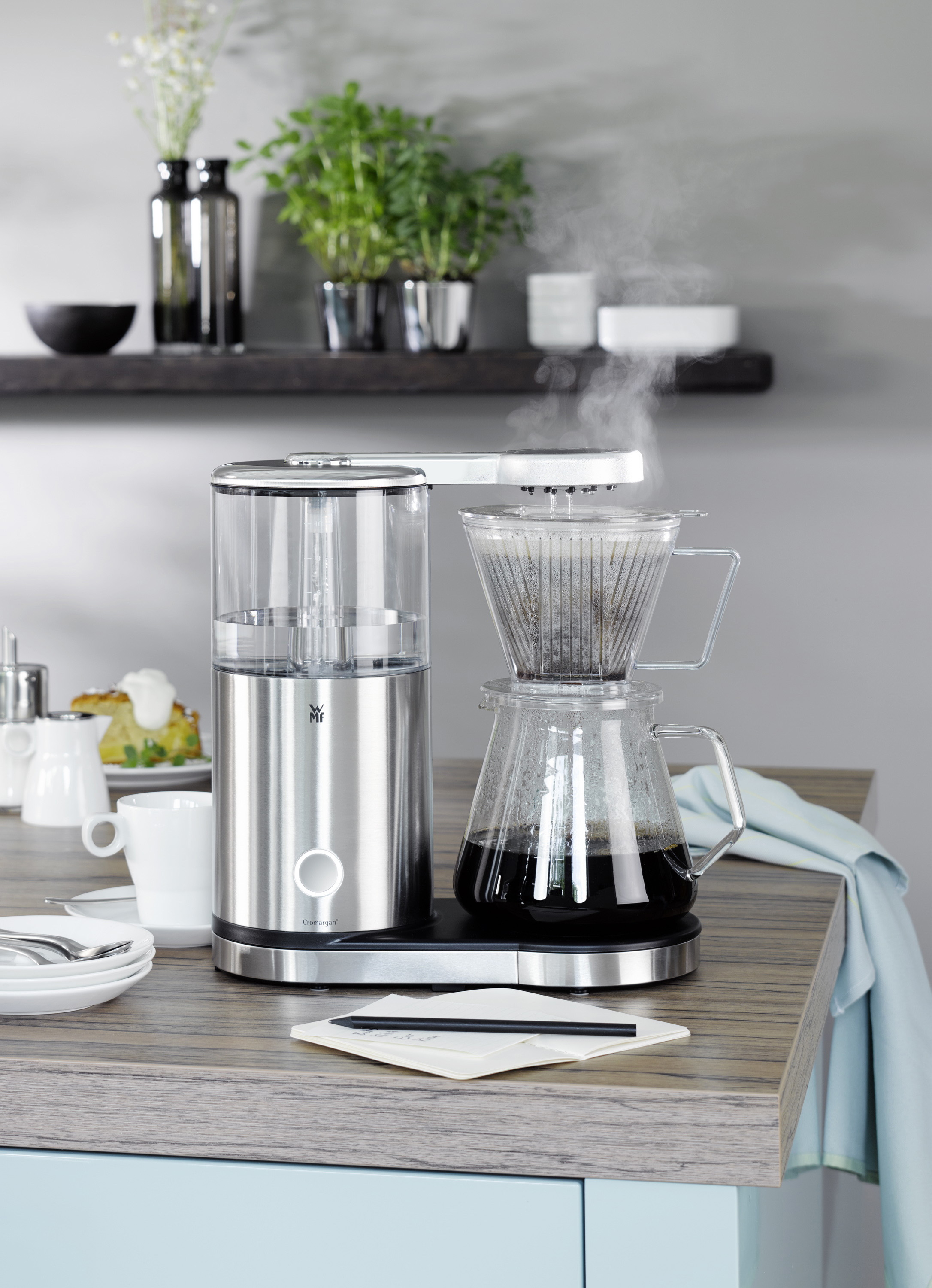 Die WMF AromaMaster Kaffeemaschine mit Glas- oder Thermokanne nutzt ein neues Brühverfahren: Eine hohe Wassertemperatur, die gleichmäßige Benetzung des Kaffeepulvers und die ideale Brühdauer. Alle Aspekte, die eine optimale Aromaentfaltung und ein maximales Geschmackserlebnis garantieren, wurden berücksichtigt. Dank transparenter Materialien kann zugleich der gesamte Vorgang beobachtet werden ein tolles optisches Erlebnis.