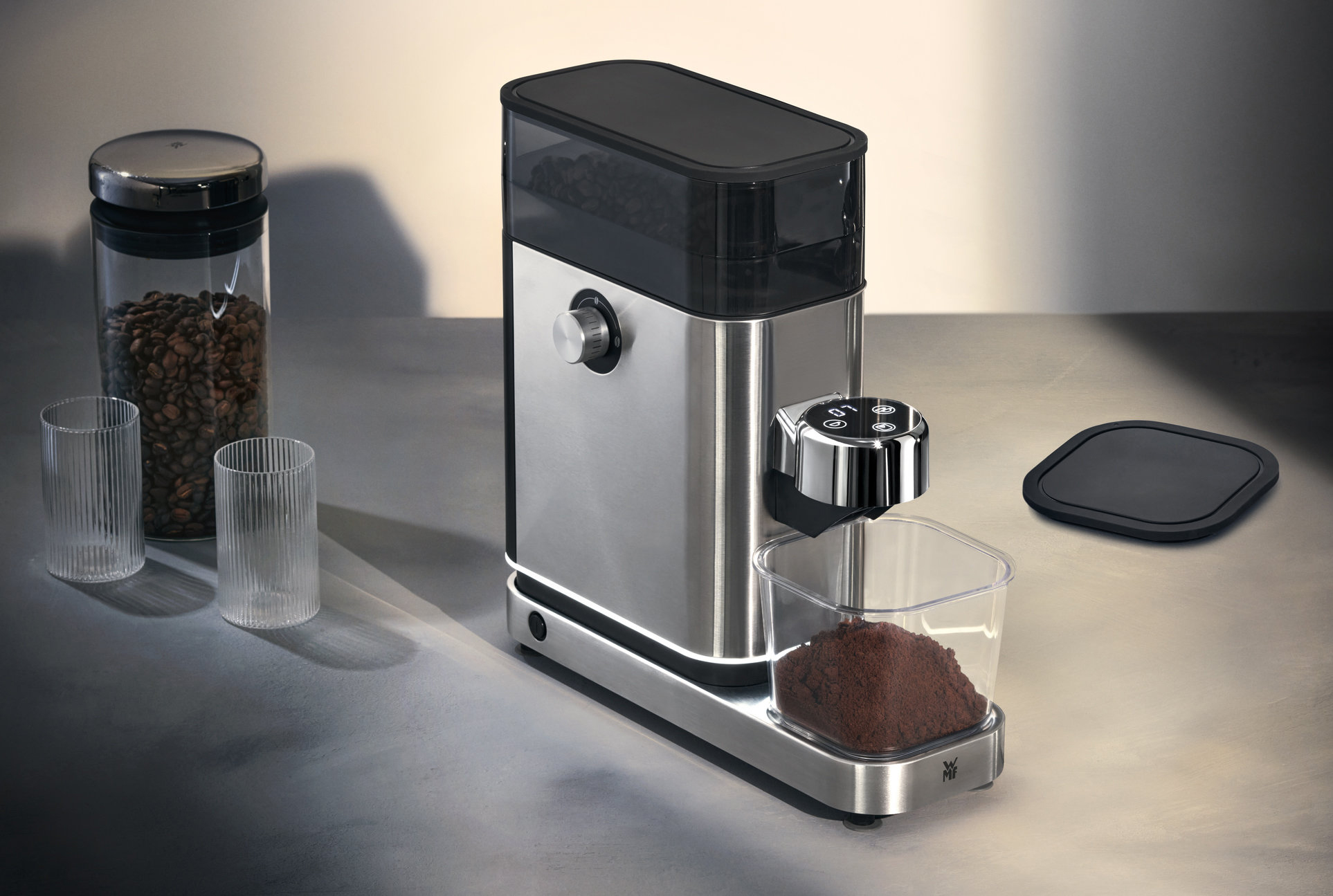 Die WMF Espressomühle bietet bis zu 40 unterschiedliche Mahlgrade und ein robustes Mahlwerk aus hochwertigem Edelstahl.