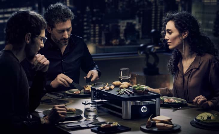 Fondue oder Raclette? Mit der WMF Lumero Gourmet Station 3-in-1 braucht sich die Silvesterrunde nicht zu entscheiden, sondern erhält Raclette-Grill, Fondue-Topf und elektrischen 360° Antihaft-Indoorgrill in einem. Dank separater Temperaturregulierung lassen sich Raclette und Fondue parallel bedienen.
