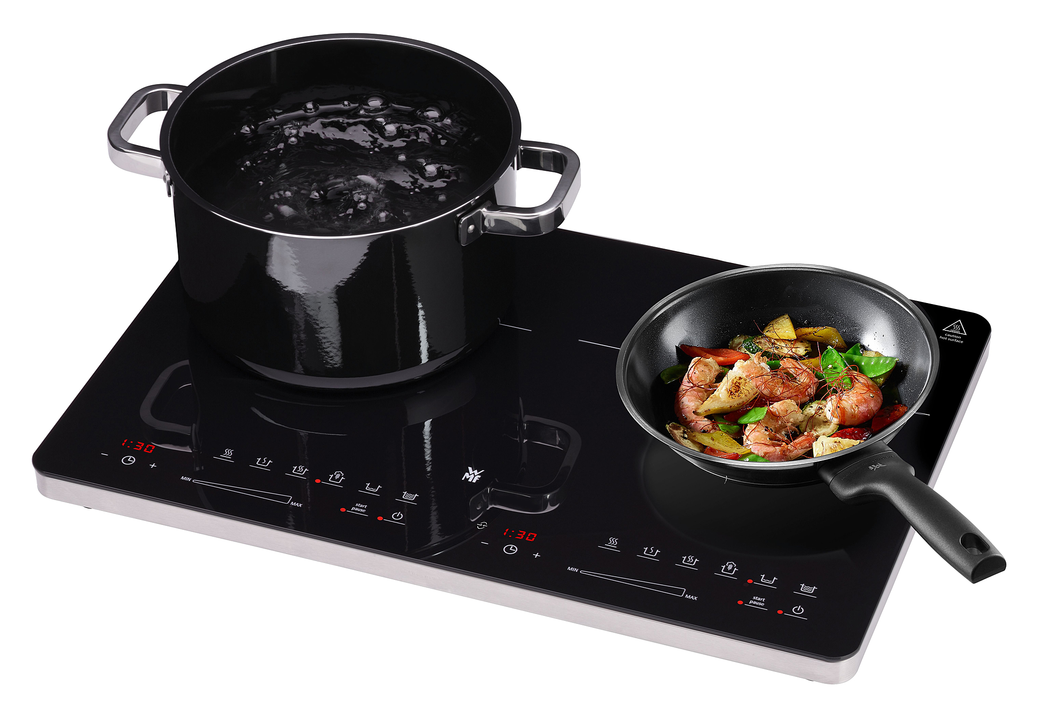 Das WMF Kult X Induktionskochfeld ist ein mobiles Doppel Induktionskochfeld aus einem robusten und hochwertigem Cromargan-Gehäuse sowie einer Glaskeramik-Oberfläche. Es liefert eine Leistung bis zu 3500 Watt und ist schneller als Elektroherde und genauso schnell wie Gasherde.