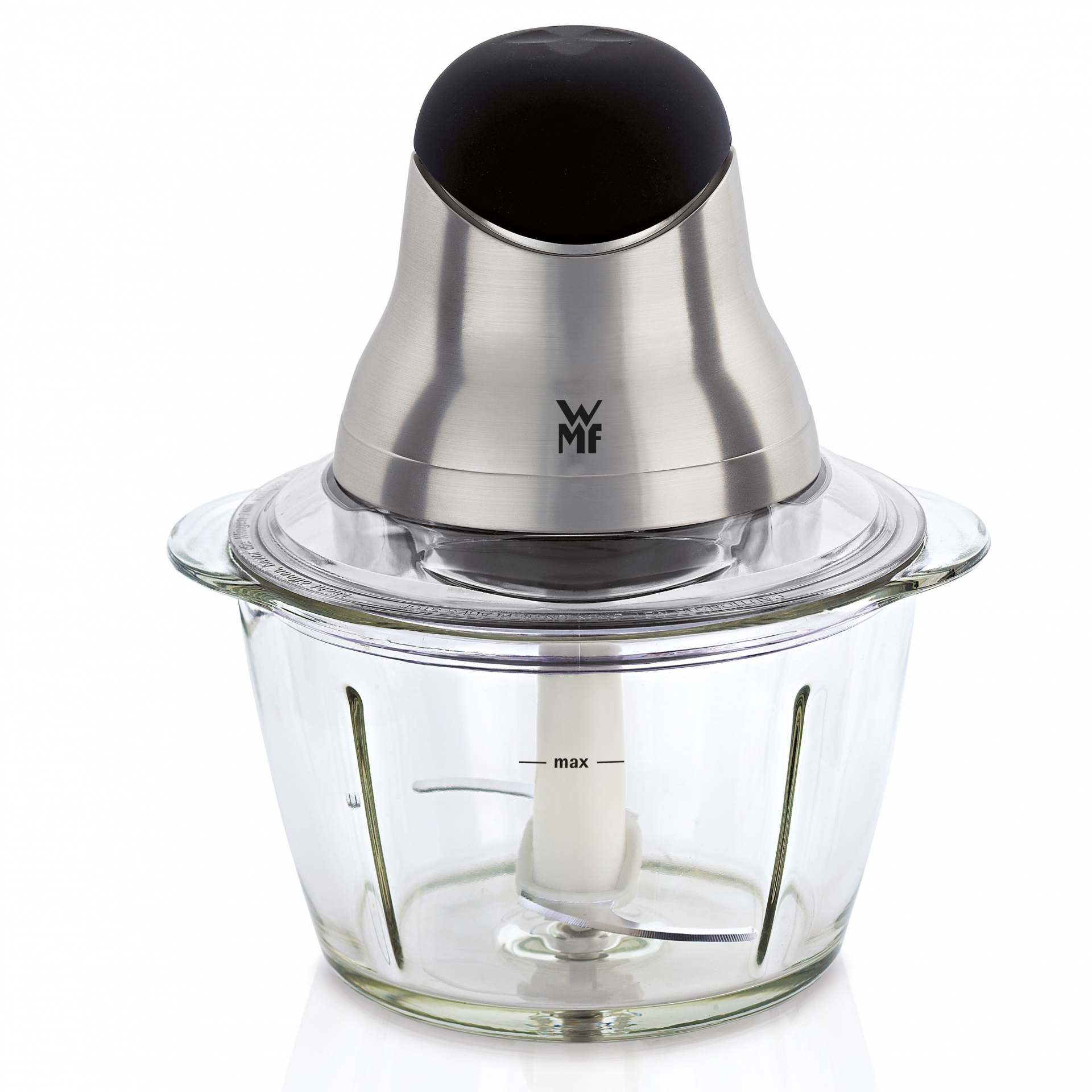 Der WMF Kult Zerkleinerer kriegt mit seinem zweiflügligen WMF perfect cut-Edelstahl-Messer alles klein: Zwiebel, Kräuter, Parmesankäse oder auch Nüsse werden streufähig portioniert. Er ist besonders handlich, mit einem Griff aus dem Schrank geholt und auch mit einer Hand zu bedienen. Der Zerkleinerer kommt schick mit „Edelstahl plus“- Gehäuse – Edelstahl in gebürsteter Optik und mit einem speziellen Schutzlack versehen. Der 1-Liter-Glasbehälter inklusiv Aufbewahrungsdeckel und die herausnehmbarer Messereinheit sind leicht zu reinigen.
