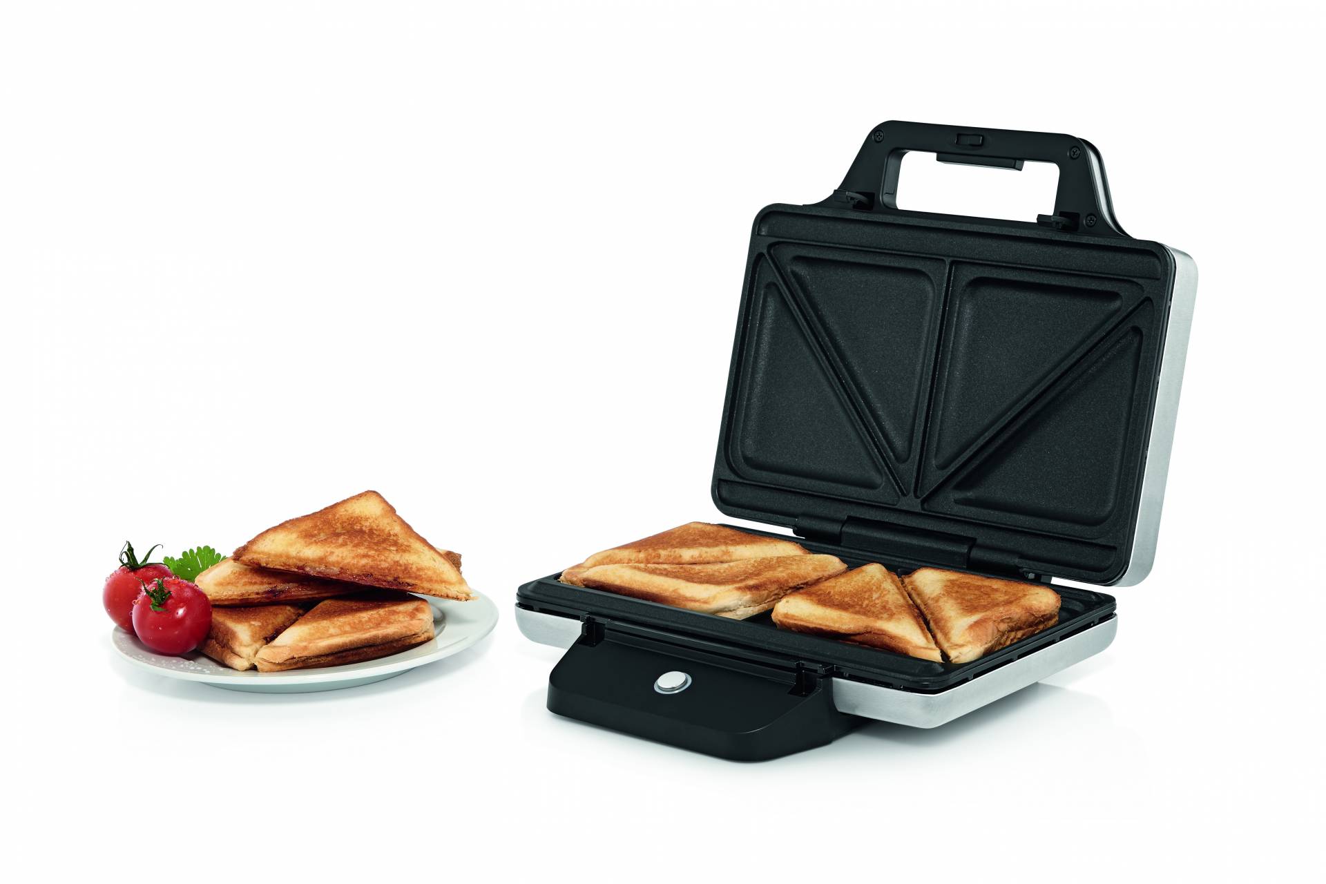 - Platz für zwei Sandwiches in jeder Größe – von Standard- bis XXL-Toastbrotscheiben (Sandwichgröße je max. 130 x 130 mm)