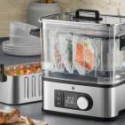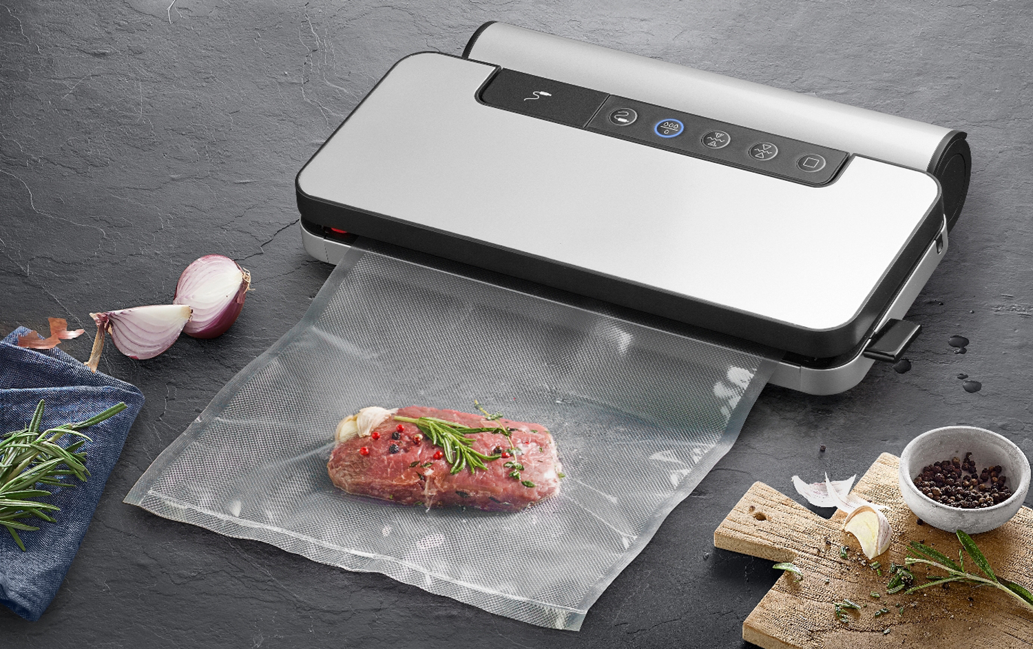 Das Gerät der Serie WMF Lono vakuumiert und schweißt die zu garenden Lebensmittel in die vorhandene Folie ein und bereitet sie so für das Sous Vide Garen vor. Eingeschweißte Lebensmittel sind so – ganz ohne Konservierungsstoffe – länger haltbar. Die Schweißzeit ist für feuchte oder trockene Lebensmittel einstellbar.