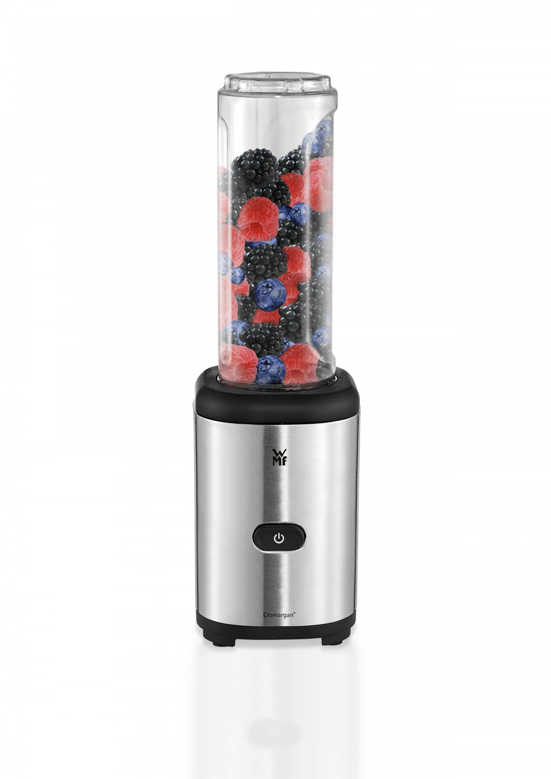 Der WMF Mixer KULT X Mix & Go ist aus Cromargan® schönster Edelstahl in matt glänzender Optik. Der Mixer ist mit 300 Watt ausgestattet und extrem leistungsstark: Er zerkleinert mit seinen max. 23.000 U/min bei 243 km/h und dem kleinen Durchmesser auch grüne Zutaten ausgezeichnet. Der