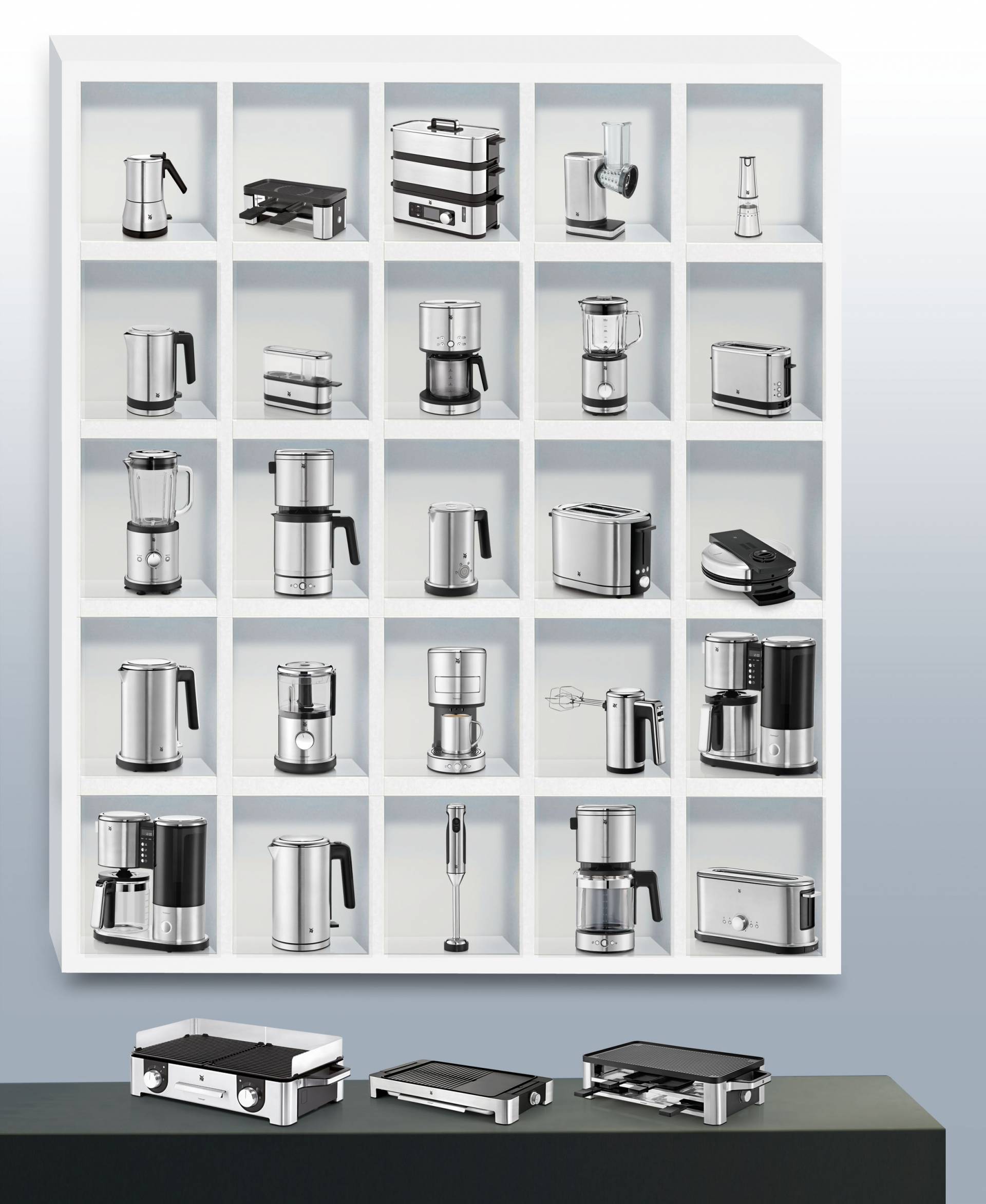 Zur IFA 2015 werden die WMF KÜCHENminis mit der zweiten Generation ergänzt um einen Salat-to-go, den Vitalis E Dampfgarer, das Raclette für zwei mit Schokoladenfondue, eine Handkaffeemühle und den Espressokocher für zwei oder vier Tassen.