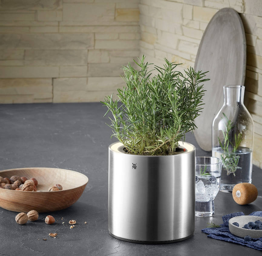 Mit dem Kräuter @home Pflanzentopf hatte die WMF vor zwei Jahren ihr Portfolio erfolgreich um das neue Segment Ambient mit ästhetischen wie praktischen Produkten für die Küche und den Wohnbereich erweitert. Zur Ambiente 2019 erhält dieser Trendbereich nun weitere Verstärkung durch den Kräuter @home Single. Diese kleinere Version des Kräutergartens ist ebenso umfangreich ausgestattet und setzt mit dem WMF Ambient Light stilvolle Akzente – so erscheinen die Kräuter immer im rechten Licht. Damit eignet sich der Einzelpflanzentopf ideal für das Indoor Gardening zu Hause und ist zudem eine außergewöhnliche Geschenkidee.