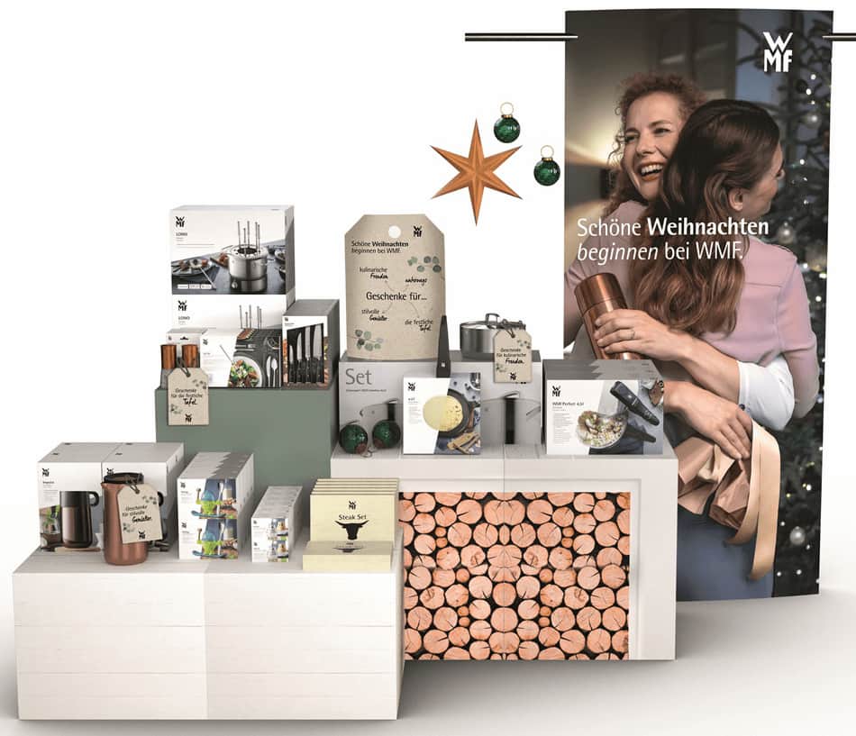 Die diesjährige WMF-Weihnachtspromotion erscheint in einem edlen, minimalistisch-skandinavischen Stil. Unter dem Motto „Schöne Weihnachten beginnen bei WMF“ stehen vom 9. November bis Weihnachten Geschenkideen, Neuheiten sowie attraktive Angebote der Marken WMF und Silit bereit.