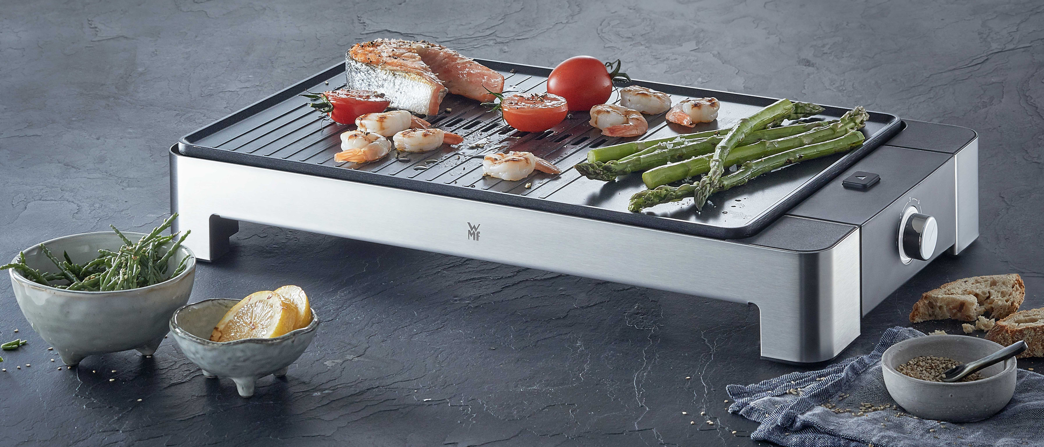 Der WMF Tischgrill Lono 1/3 ist ab Ende März 2018 zum Preis von 119,99 € erhältlich; der Standfuß für 59,99 € (Preise UVP).