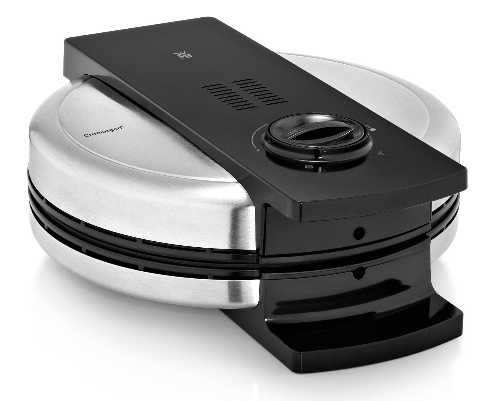 Das WMF Waffeleisen Lono arbeitet mit 900 Watt, ist aus Cromargan und Bestandteil des My WMF Cromargan Küchensets. Mit 20 cm Backfläche bräunt es durch gute Hitzeverteilung sehr gleichmäßig und der Bräunungsgrad ist stufenlos einstellbar. Es hat einen in der Oberschale integrierten Lüfter, der die Oberflächentemperatur des Gehäuses senkt. Hilfreich ist ein optisches Signal, das informiert, wenn der Backvorgang beendet ist. Durch die antihaftbeschichteten Backflächen löst sich die fertige Waffel rückstandsfrei.