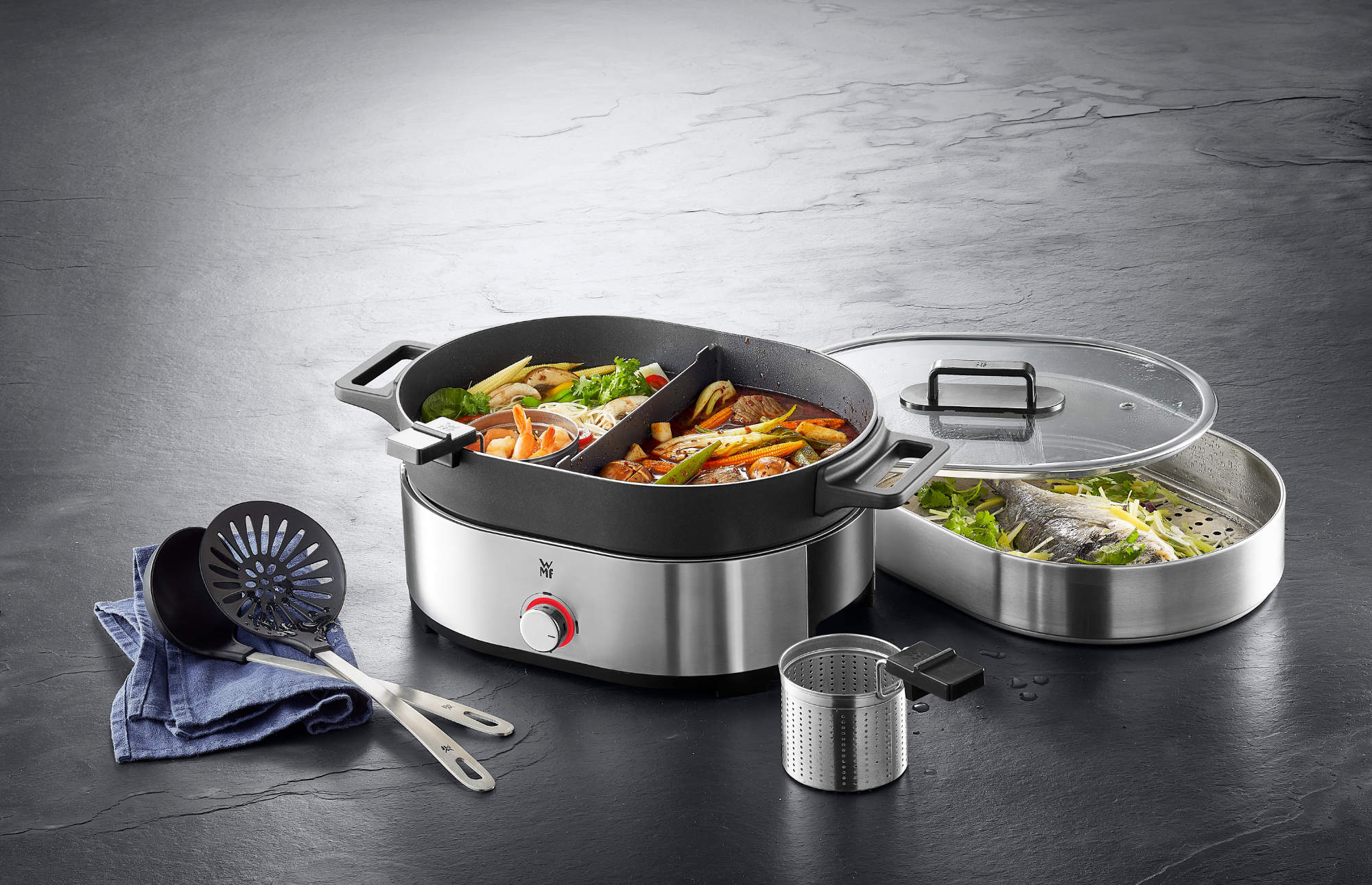 Ermöglicht wird der neue Koch-Spaß durch eine Reihe an durchdachtem Zubehör für umfangreiche Nutzungsmöglichkeiten: Der Zwei-Kammer-Topf mit Antihaftbeschichtung sowie die zwei dazu passenden Cromargan-Körbe ermöglichen eine gleichzeitige Zubereitung einzelner, individuell abgestimmter Zutaten und verschiedener Saucen oder Brühen.