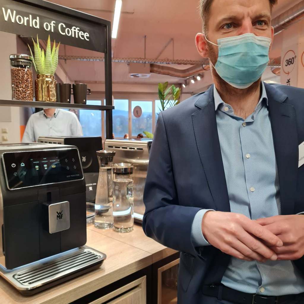 Keine Menschen-Ansammlungen, keine Grüppchen-Bildung, kaum echter Begegnungsverkehr auf den Gängen: Das Hygiene-Konzept der EK/servicegroup wurde zur EK LIVE unter dem Diktat von 2G+ vorbildlich umgesetzt. Einzig in der zweiten Etage, im Entree der „Elektrohalle“, gab es so etwas wie ein (freilich Corona-konformes) „Get-together“. Und das aus gutem Grund: In Bielefeld – anstatt in Frankfurt auf der abgesagten „Ambiente“ – feierte die Kaffeevollautomatenserie WMF Perfection 800 auf einem komplett neuen WMF-Messestand ihre Weltpremiere.