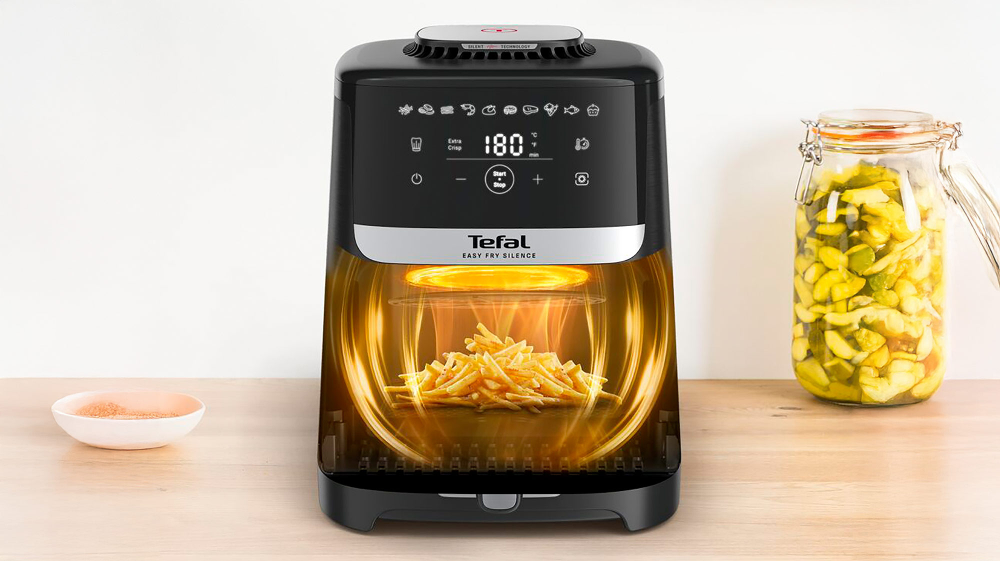 Leise und mit XL-Fassungsvermögen: Tefal Heißluftfritteuse Easy Fry Silence.