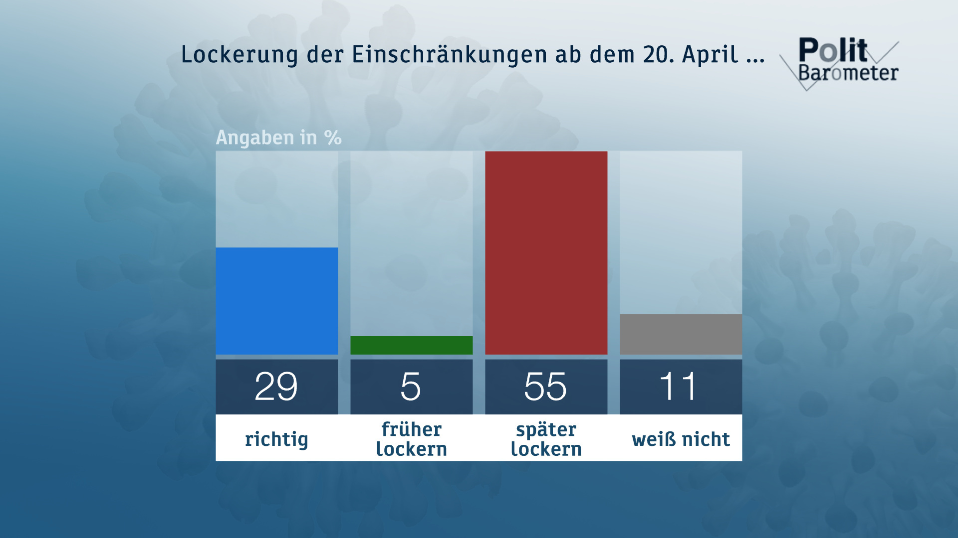 Eine Mehrheit beurteilt eine mögliche Lockerung der Corona-Maßnahmen zurückhaltend. Foto: ZDF/Forschungsgruppe Wahlen